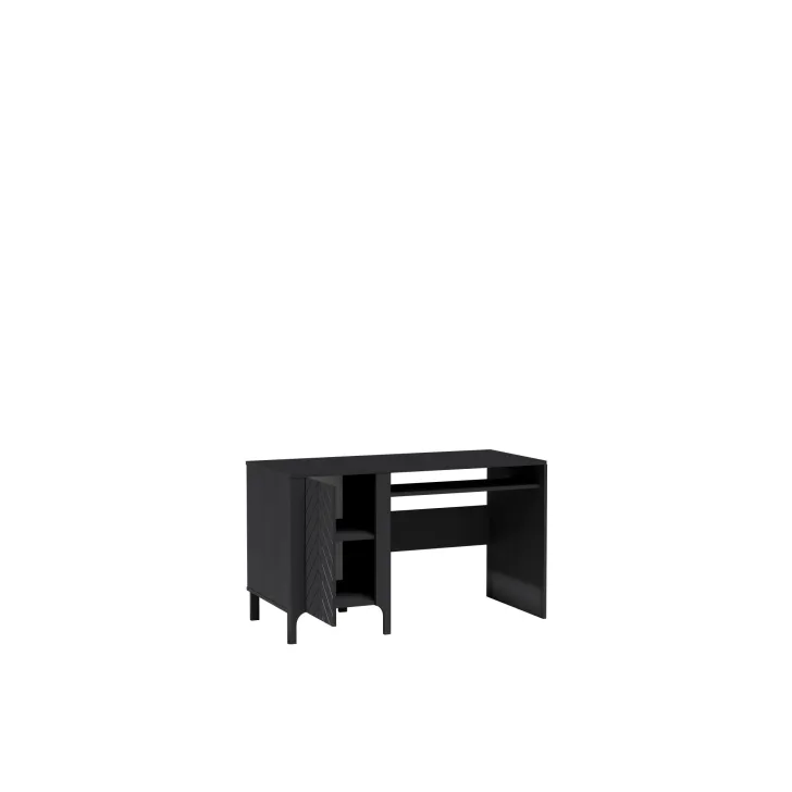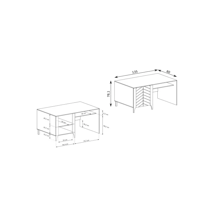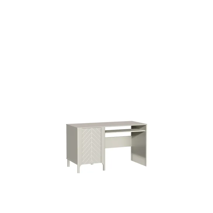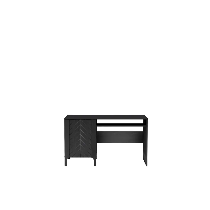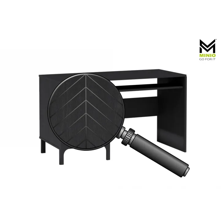 Fronty mebla ozdobione są wzorem jodełki, co nadaje wnętrzu unikalnego i przytulnego charakteru. Takie rozwiązanie sprawia, że biurko świetnie komponuje się z różnymi stylami – od skandynawskiego, przez klasyczny, aż po nowoczesny.