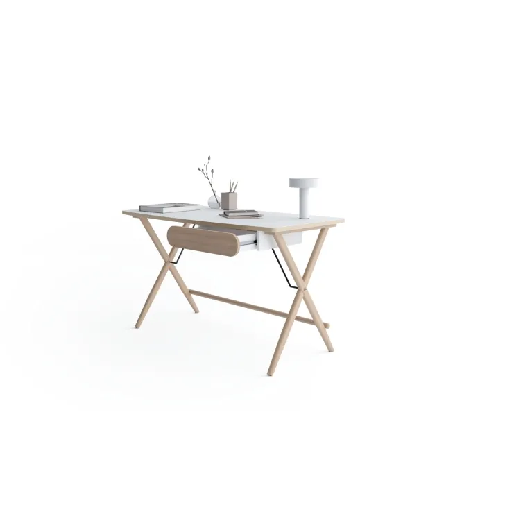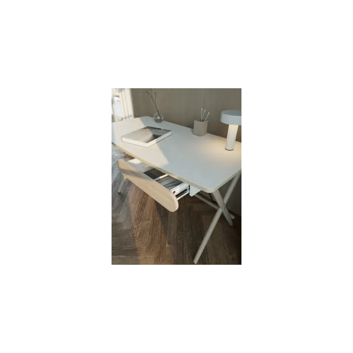 Dodajmy do tego lekkie, drewniane nóżki w kolorze jasnego dębu, które jednocześnie zapewniają niezrównaną stabilność. Duży blat roboczy z zaokrąglonymi narożnikami gwarantuje komfort pracy, a szuflada umieszczona pod blatem idealnie pomieści wszystkie twoje drobiazgi i przybory biurowe. W rezultacie, biurko MORELIA pomaga w utrzymaniu porządku i organizacji, co zdecydowanie wpływa na jakość wykonywanej pracy.