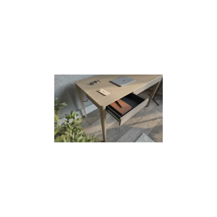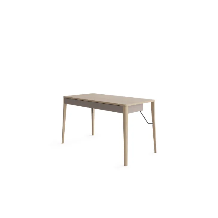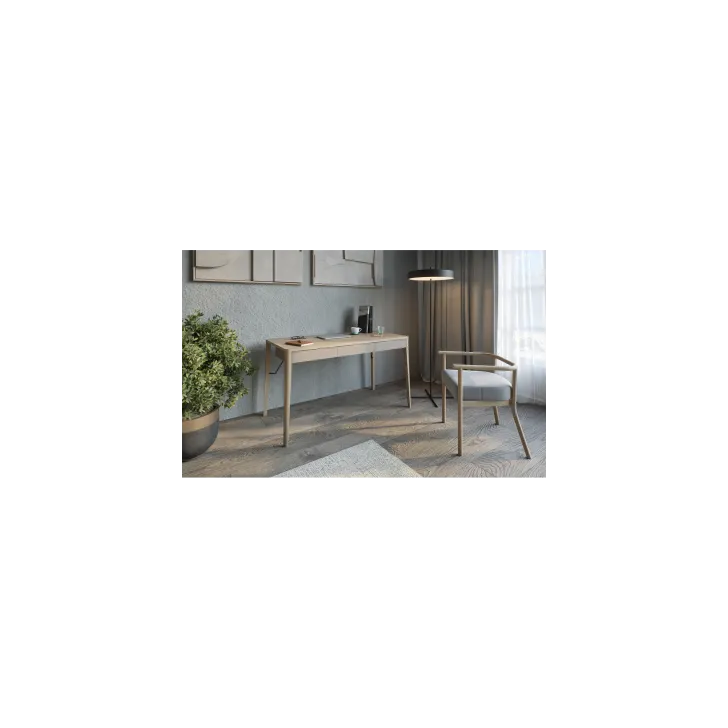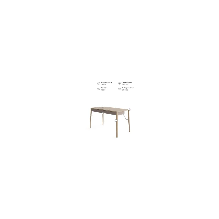 Drewniane nóżki w kolorze jasnego dębu nadają lekkości, jednocześnie gwarantując stabilność, dzięki czemu biurko jest nie tylko stylowe, ale także niezwykle praktyczne. Estetyczne połączenie kolorów jasnego dębu i beżu sprawia, że znakomicie wpisze się w trendy współczesnych wnętrz, nadając im przytulnej, ale jednocześnie nowoczesnej atmosfery.