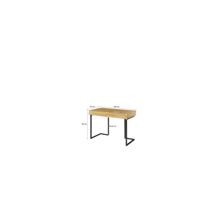 Wyjątkowym atutem prezentowanego biurka są jego dwie pojemne szuflady, które umożliwiają przechowywanie drobiazgów, zawsze w zasięgu ręki. Praktycznie rozwiązane przestrzeń blat roboczy zapewnia optymalne warunki do pracy czy nauki, a eleganckie nogi dodają mu unikalnego charakteru.