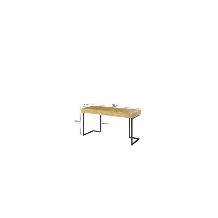 Wymiary Biurko z dwiema nogami 150 cm Teen Flex: