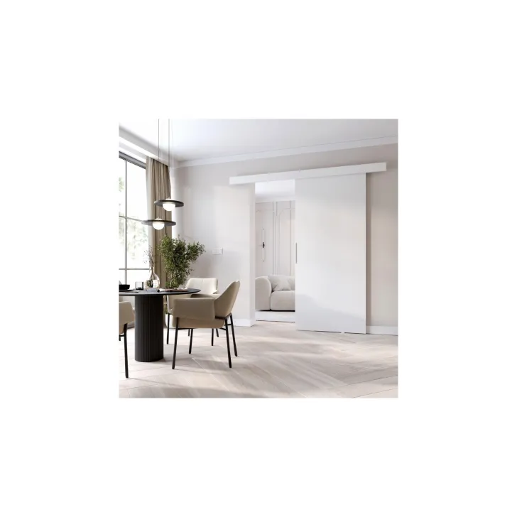 Drzwi przesuwne "CLEAN A" łączą w sobie jakość i nowoczesność. Pozyskane z najwyższej klasy materiałów są nie tylko trwałe, ale również pozytywnie wpływają na estetykę każdego wnętrza. Dodatkowo, drzwi są dostępne w szerokiej gamie kolorów i wzorów, takich jak Wenge, Sonoma dąb, Dąb wotan, Szary, Biały i Czarny, dzięki czemu bez trudu dobierzesz kompozycję pasującą do Twojego domu.