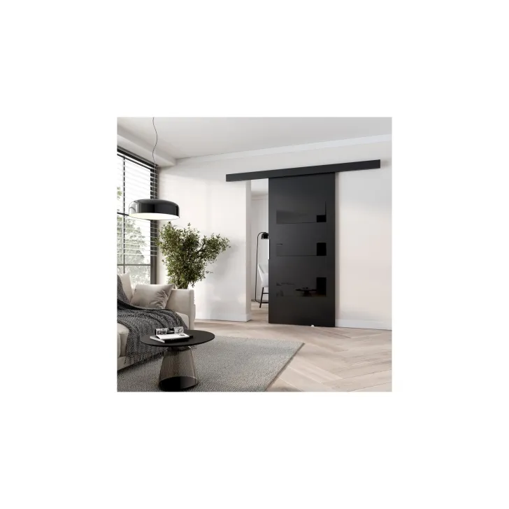 Dodatkowo, dzięki zastosowaniu nowoczesnego systemu przesuwnego i bardzo wysokiej jakości materiałów, nasze drzwi przesuwne są niezwykle funkcjonalne i wytrzymałe. Front drzwi zdobiony jest czarnymi panelami ozdobnymi (szkło lacobel) - to wszystko sprawia, że drzwi te są idealnym rozwiązaniem do każdego wnętrza.