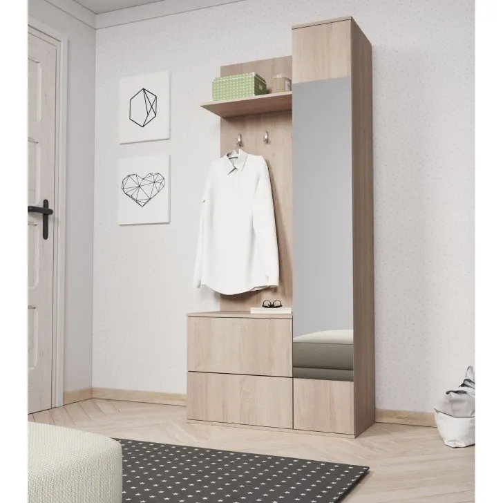 - Na przednim froncie szafy znajduje się lustro, które pozwala na szybkie sprawdzenie swojego wyglądu przed wyjściem z domu.