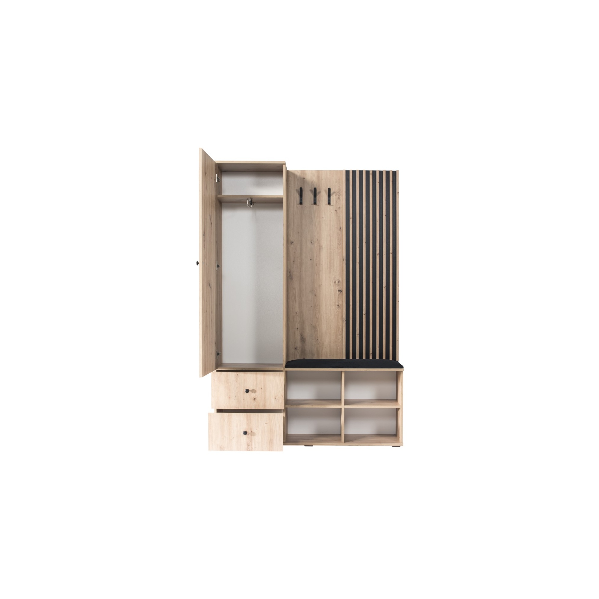 Garderoba "MALI" to nowoczesny mebel do przedpokoju w stylu loftowym. Garderoba wykończona w kolorze dąb Artisan w połączeniu z czarnymi dodatkami to absolutny hit.