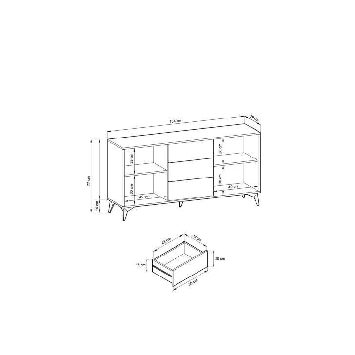 • Stylowy design: Komoda DIAMOND wyróżnia się minimalistycznym, ale wyrafinowanym stylem, który wpasuje się w każde nowoczesne wnętrze.