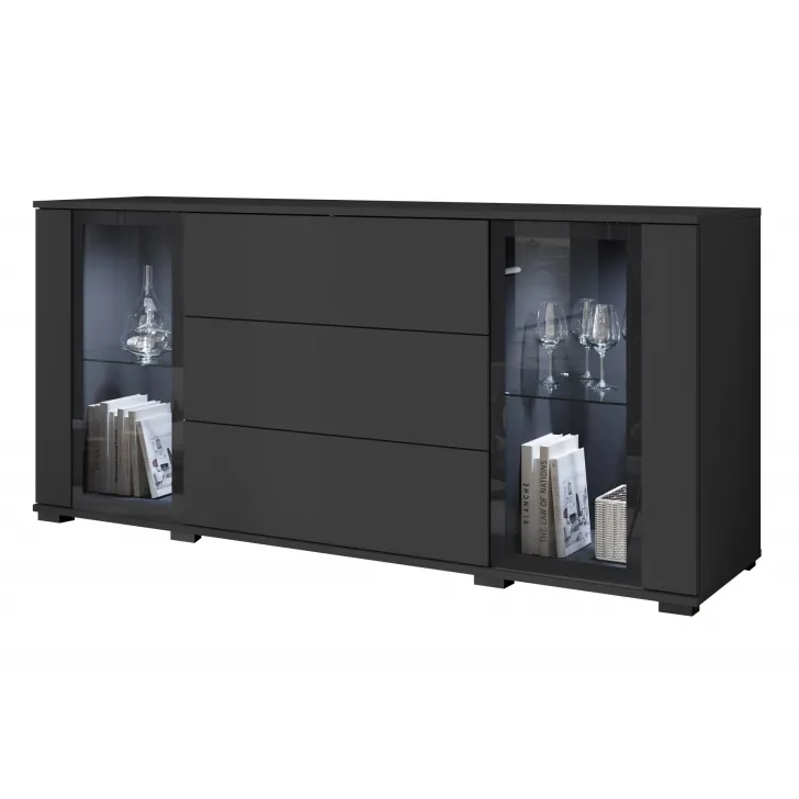 Opcjonalne oświetlenie LED potrafi subtelnie akcentować zawartość witryn, wprowadzając w ten sposób przyjemny nastrój do każdego pomieszczenia. Niezależnie od dodatków, komoda FARO 150 cechuje się solidnym wykonaniem oraz nowoczesnym designem.