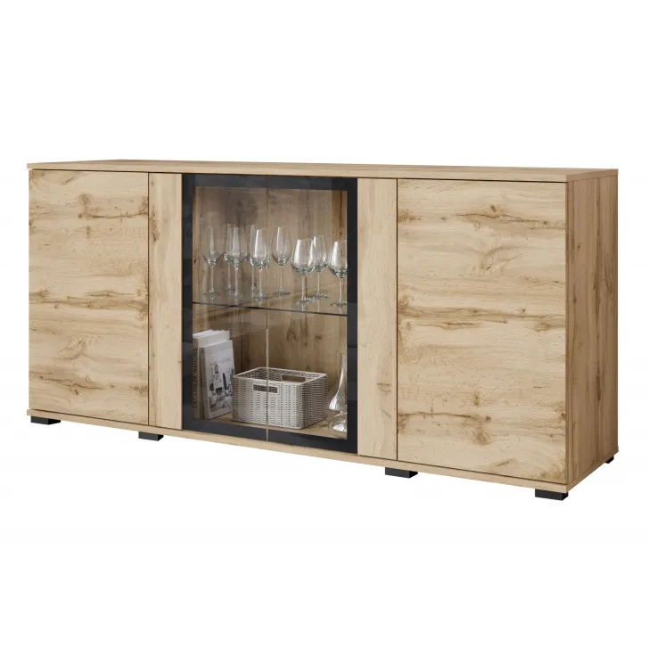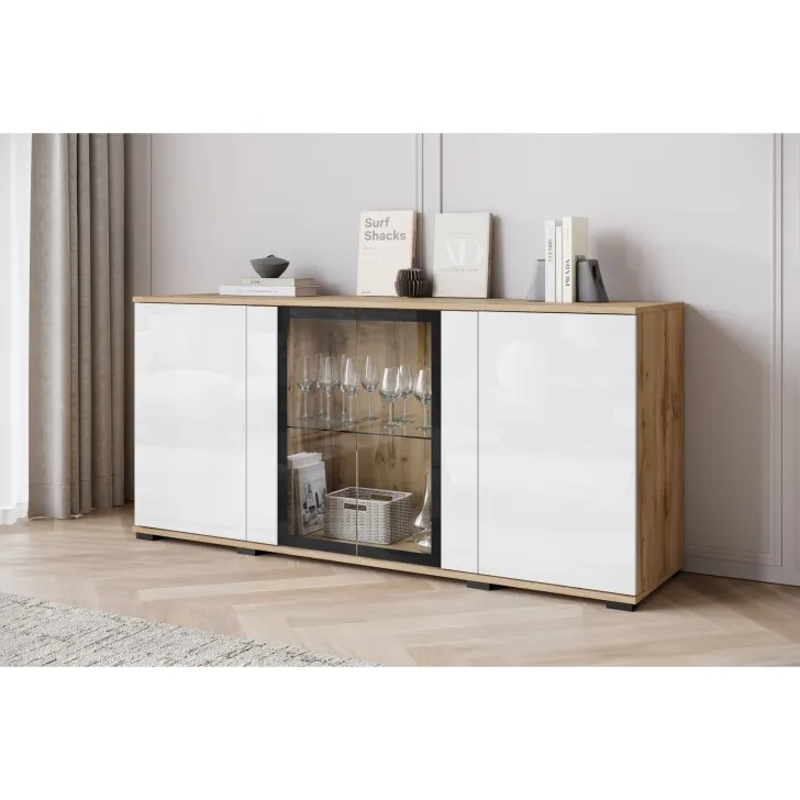 Atrakcyjna i nowoczesna, komoda FARO 154 z przeszklonymi frontami to doskonałe uzupełnienie dla Twojego salonu, jadalni czy pokoju dziennego. Ten przemyślanie zaprojektowany mebel oferuje nie tylko funkcjonalne przechowywanie, ale również pomaga tworzyć stylowy i elegancki wystrój.