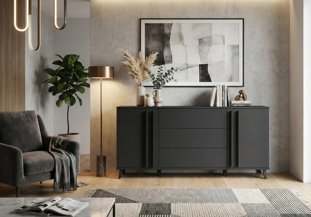 Wprowadź nowy wymiar stylu i funkcjonalności do swojego salonu z Komodą HURON 150 cm. To zaawansowany mebel, który łączy nowoczesne wzornictwo z praktycznym podejściem do przechowywania. Komoda HURON tworzy idealny balans między estetyką a użytecznością, tworząc wyraziste i unikalne efekty wizualne, które są jednocześnie funkcjonalne i stylowe.