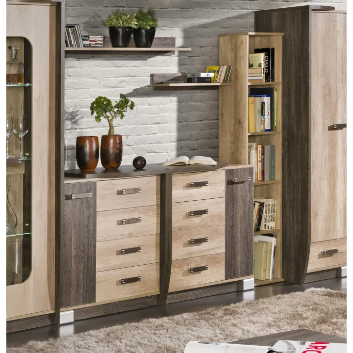 Dzięki swojej klasycznej, ale jednocześnie nowoczesnej estetyce, komoda Romeo doskonale prezentuje się zarówno w salonie, jak i biurze czy sypialni. Kolorystyka Dąb Canyon i Arusha dodaje jej elegancki charakter, który przyciąga wzrok. Połączenie tych tonów sprawia, że ta komoda pasuje do wielu różnych stylów wnętrz, dodając im charakteru i ciepła.