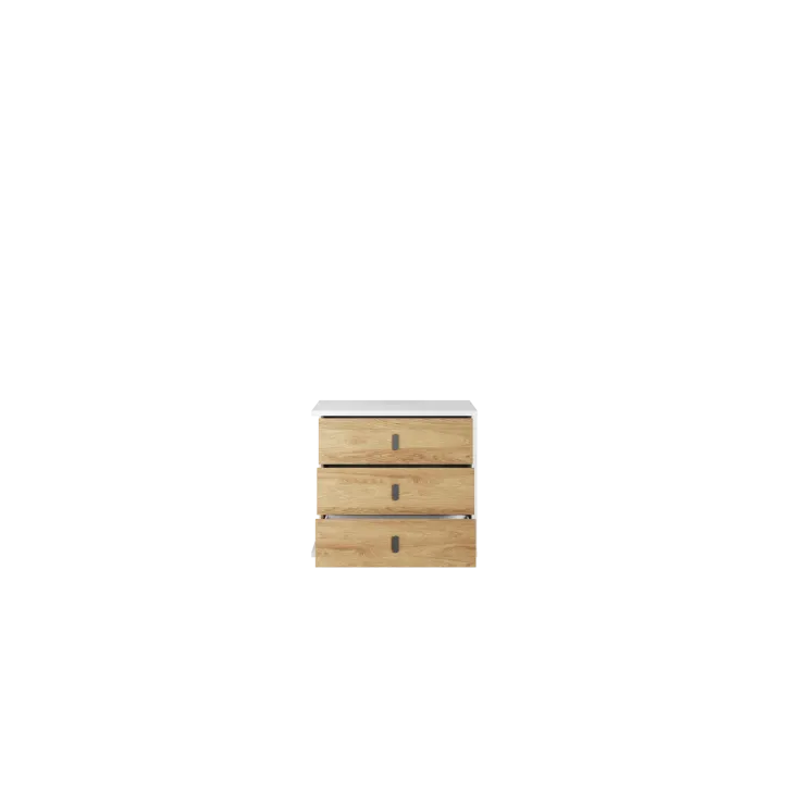 - Praktyczność i funkcjonalność - Mebel z trzema przestronnymi szufladami, oferującymi mnóstwo miejsca do przechowywania.