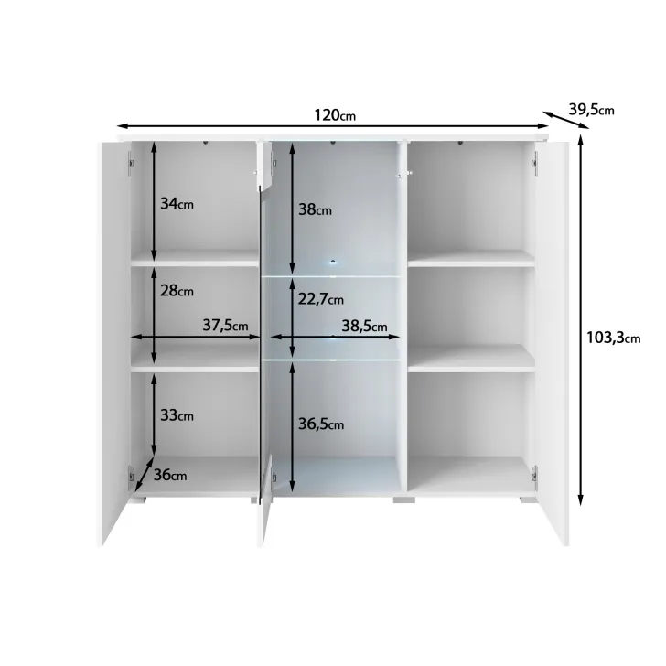 Wymiary Komoda z przeszkleniem "VEVE" 120 cm z frontami w połysku