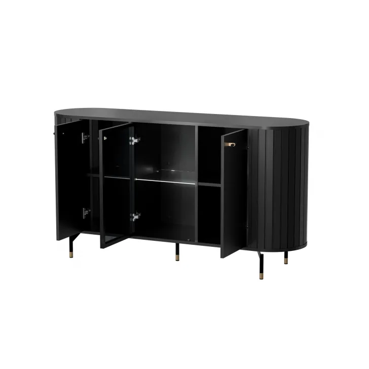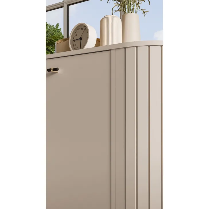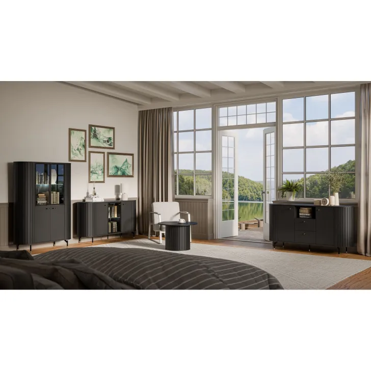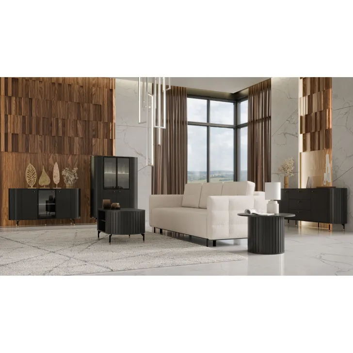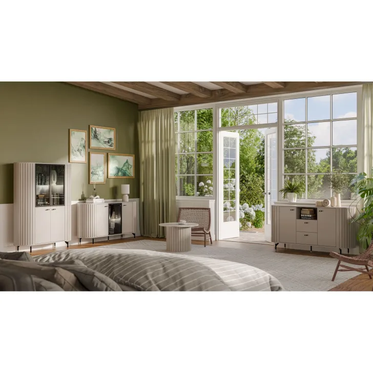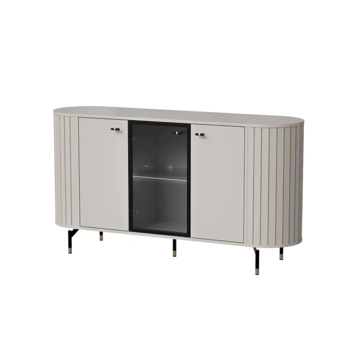Komoda ZAMA 3 dostępna jest w dwóch wariantach kolorystycznych - beżowym lub czarnym - aby dopasować się do każdego stylu i wystroju wnętrza. O przyjaznej obsłudze świadczą zawiasy i prowadnice z cichym domykiem, a szyby w kolorze Antisol dodają lekkości i elegancji. Dodatkowo, dajemy Ci możliwość zamówienia komody z oświetleniem LED - opcja ta sprawi, że Twój salon nabierze nowego wymiaru po zmroku.
