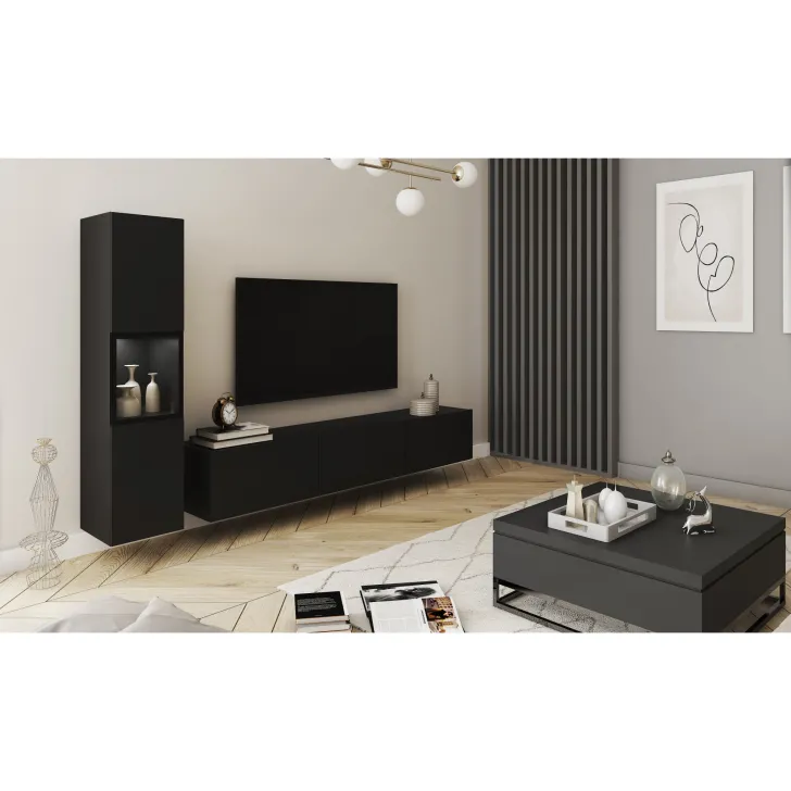 Meblościanka BRELA I to wyjątkowy, nowoczesny i wielofunkcyjny zestaw, który zapewni Ci nie tylko komfort użytkowania, ale również praktyczne rozwiązania do przechowywania. Dzięki możliwości zawieszenia na ścianie lub postawienia na nóżkach, ten mebel jest znakomitym rozwiązaniem do nawet najmniejszych przestrzeni. Zaprojektowany z myślą o funkcjonalności, szykownym wyglądzie i prosty w formie, jest doskonały do każdego rodzaju wnętrza.
