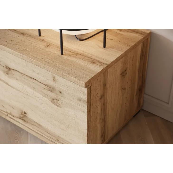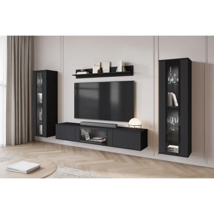 - Estetyka i trwałość – widoczne krawędzie i fronty oklejane są obrzeżem ABS o grubości 0,5 mm, co podkreśla doskonały wygląd meblościanki.