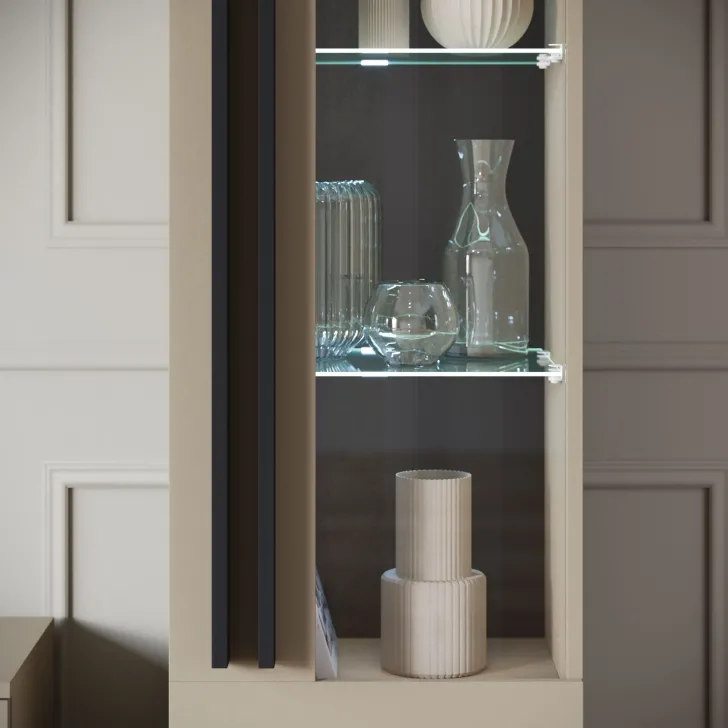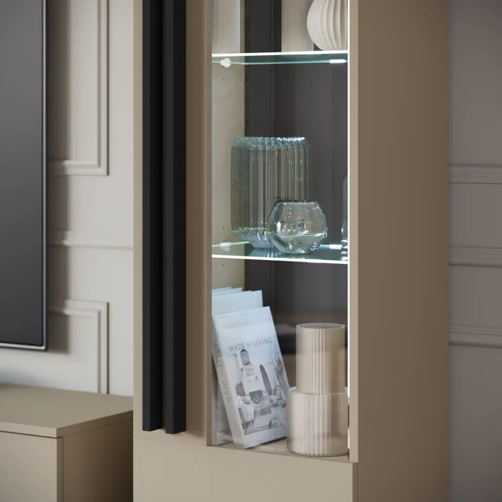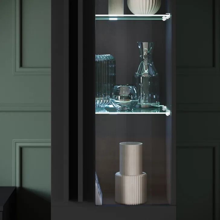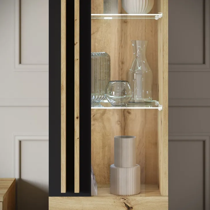 - Posiada 2 szklane półki w witrynie, doskonałe do wyeksponowania ulubionych dekoracji.
