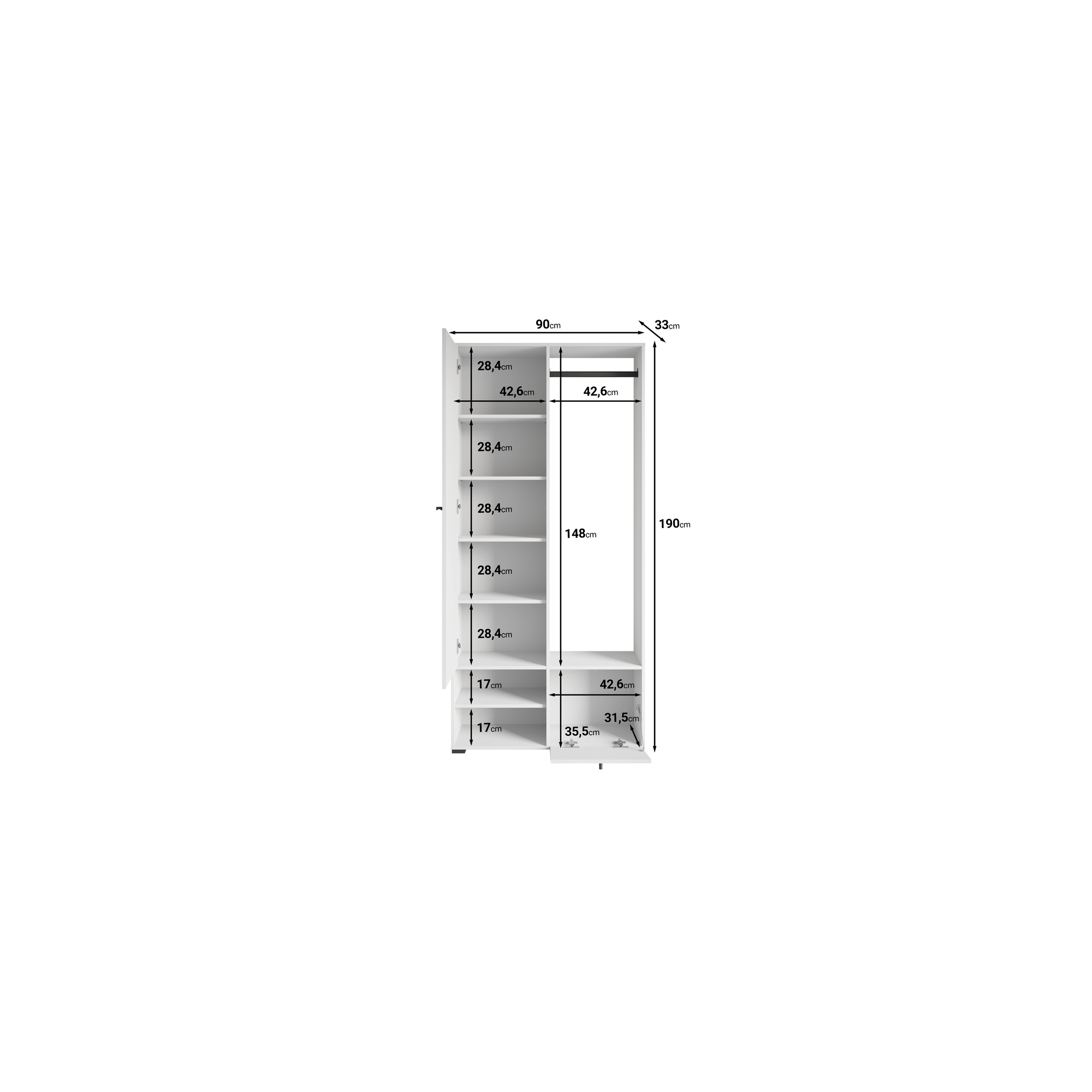 • Szerokość: 90 cm