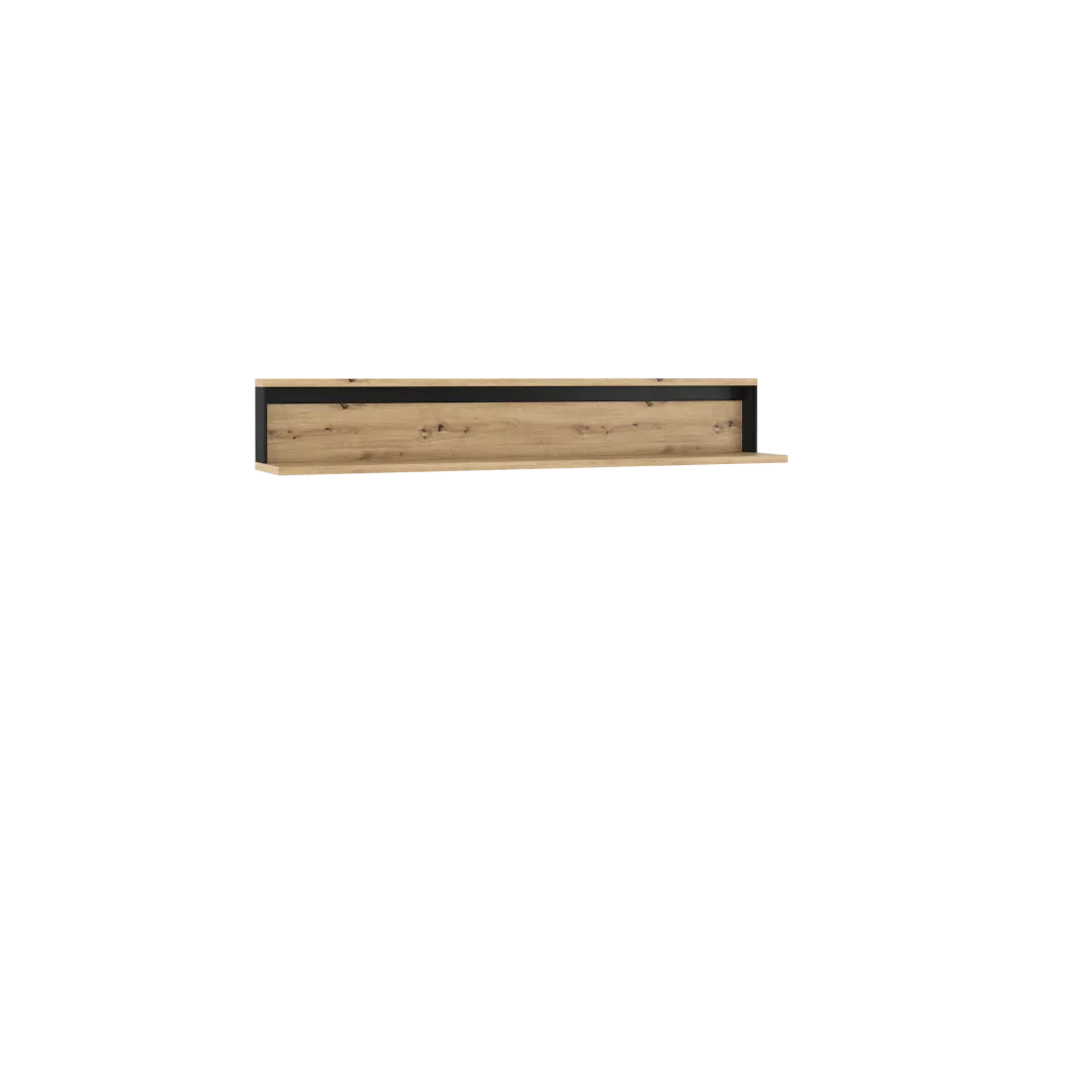 Jeśli poszukujesz nowoczesnych mebli w stylu industrialnym, to jesteś we właściwym miejscu! Zestaw mebli do salonu QUANT w kolorze Dąb Artisan to idealne rozwiązanie dla miłośników nowoczesności z nutą industrialnego charakteru. Kompozycja frontów, drewniano-podobne wykończenie z naturalnym słojem drewna i czarne ramy nadają wnętrzu wyjątkowy charakter. Prezentowana półka ścienna QUANT jest częścią zestawu, którego pozostałe elementy znajdziesz w naszej ofercie. Dzięki czemu umeblujesz swój salon.