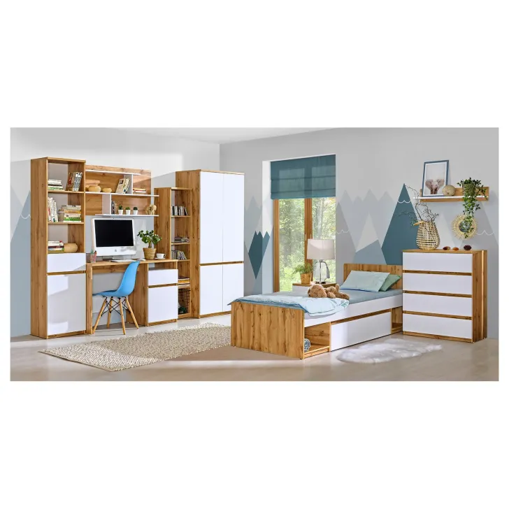 Ekstremalnie funkcjonalny regał na książki z kolekcji Arcca to mebel, który doskonale sprawdzi się w dowolnym wnętrzu, niezależnie od jego przeznaczenia. Jego uniwersalny design z powodzeniem odnajduje się zarówno w eleganckim biurze, jak i w przytulnej sypialni, czy nowoczesnym salonie. Jest to możliwe dzięki prostocie formy i neutralnemu połączeniu dębu wotan z bielą arktyczną!