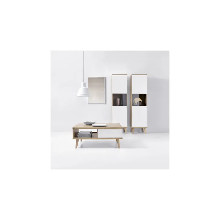 Stolik kawowy OSLO, utrzymany w inspirującej skandynawskiej stylistyce, to idealne dopełnienie każdego wnętrza. Wyjątkowy design oraz wysoka funkcjonalność sprawiają, że produkt ten to praktyczny i elegancki dodatek do Twojego salonu. Stolik w kolorystyce dąb riviera i biały doda elegancji każdemu pomieszczeniu, jednocześnie umożliwiając wygodne korzystanie z prasy, książek czy picie kawy w spokoju.