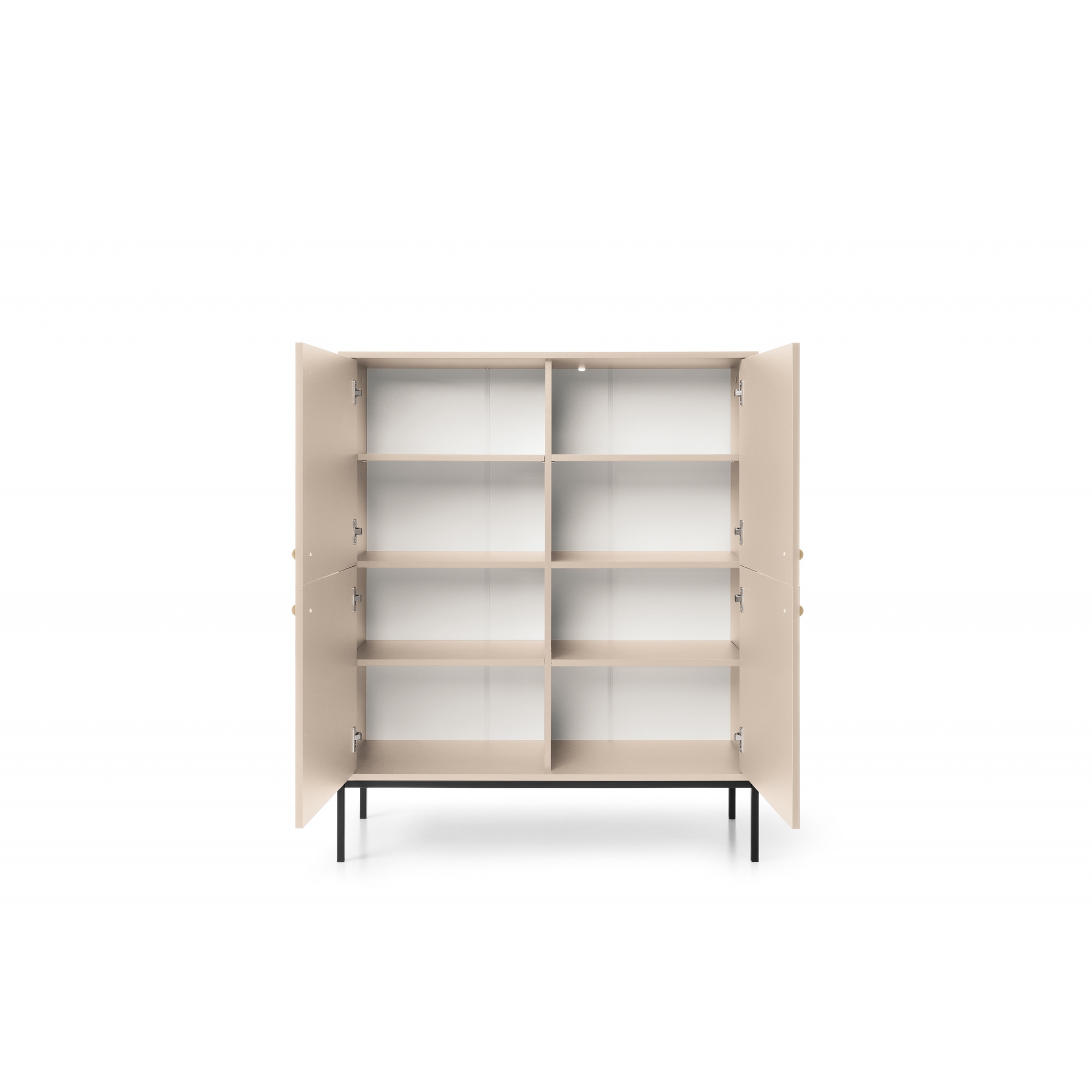 Nowoczesna komoda z czterema drzwiami. Idealna do pokoju lub salonu. Kolor komody z ozdobnymi uchwytami tworzy ciekawe połączenie. Całość stoi na wysokich, stabilnych, metalowych nóżkach. Pozwól sobie na wnętrze niczym z okładek najlepszych magazynów.