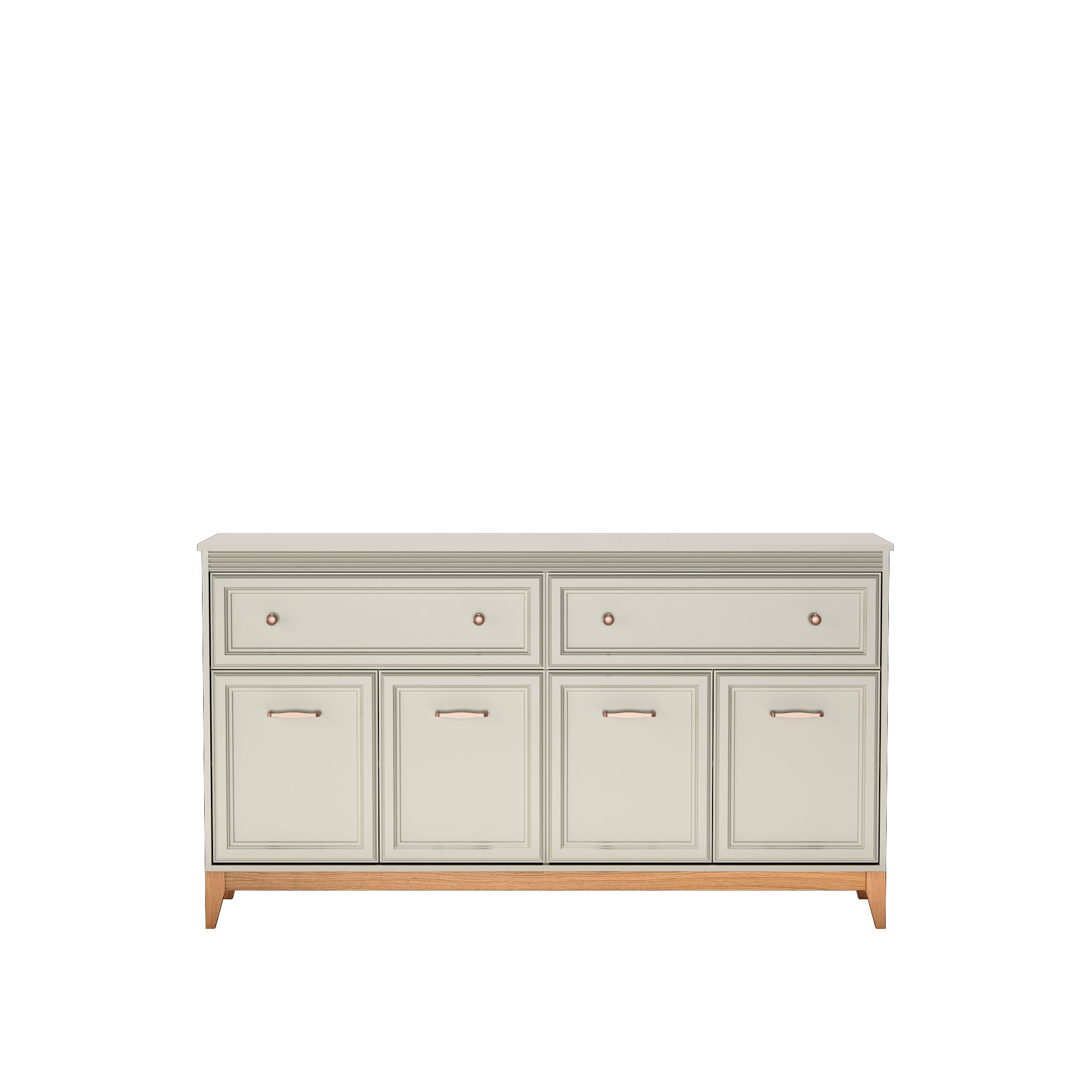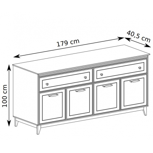 - Korpus wykonany z wysokiej jakości płyty laminowanej - Fronty frezowane - płyta MDF - Dekoracyjna listwa podblatowa - Krawędzie oklejane obrzeżem ABS - Nogi z litego drewna dębowego - Stylowe, metalowe uchwyty w kolorze miedzi - Zawiasy z cichym domykiem - Prowadnice kulkowe z miękkim dociągiem |