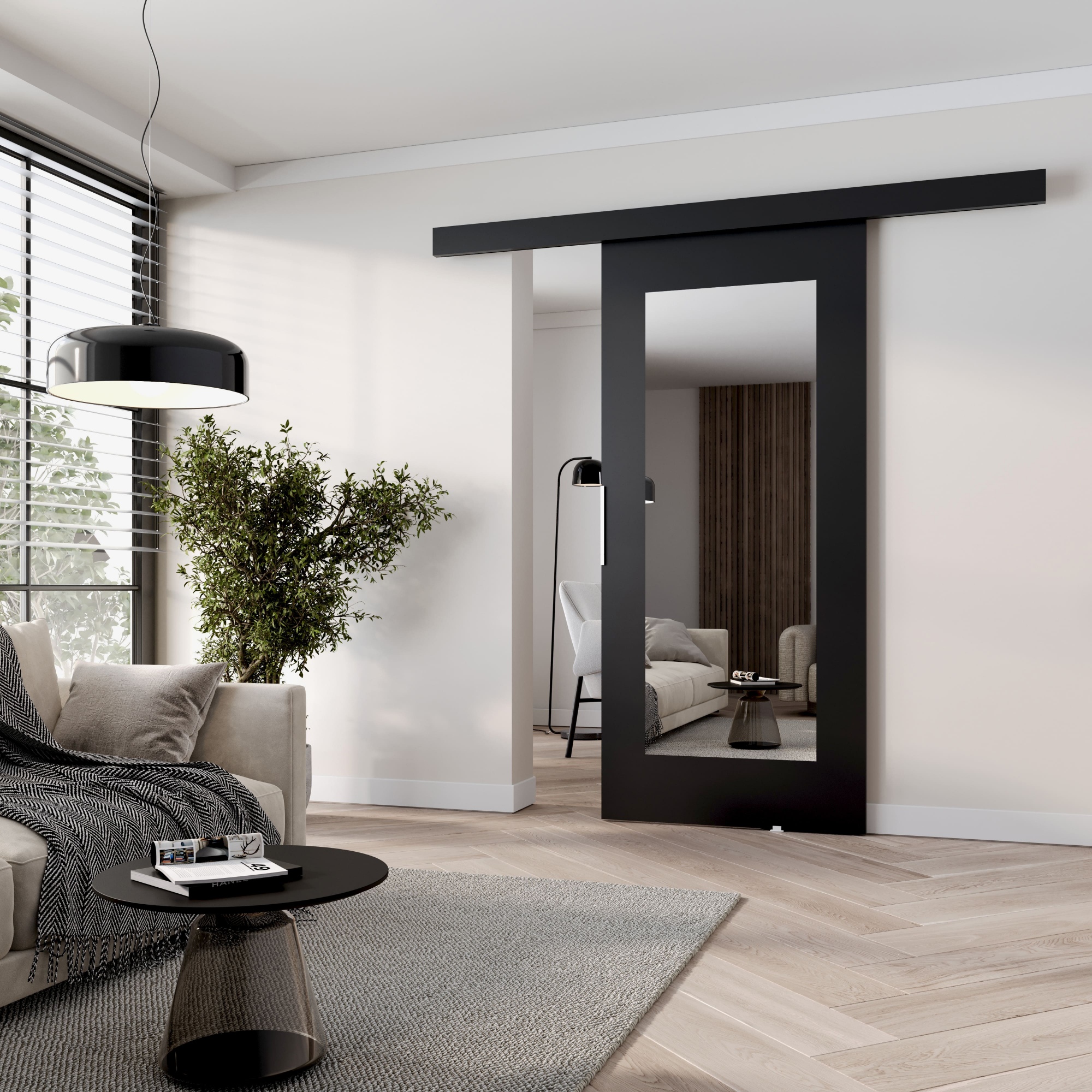 Drzwi wewnętrzne przesuwne to rozwiązanie uniwersalne, które nie tylko pasuje do różnego typu aranżacji, ale znajdzie zastosowanie w każdym pomieszczeniu. Minimalizm drzwi dodaje wnętrzu nowoczesności i sprawia, że wnętrze jak wyjęte z pierwszych stron najlepszych magazynów. Idealne rozwiązanie dla każdego, kto chce optymalnie wykorzystać przestrzeń. Zastosowanie najwyższej jakości materiałów oraz nowoczesny system przesuwny sprawiają, że nasze drzwi przesuwne to idealne rozwiązanie do każdego wnętrza. Dzięki szerokiej gamie kolorów i wzorów każdy znajdzie coś dla siebie. Front z lustrem.