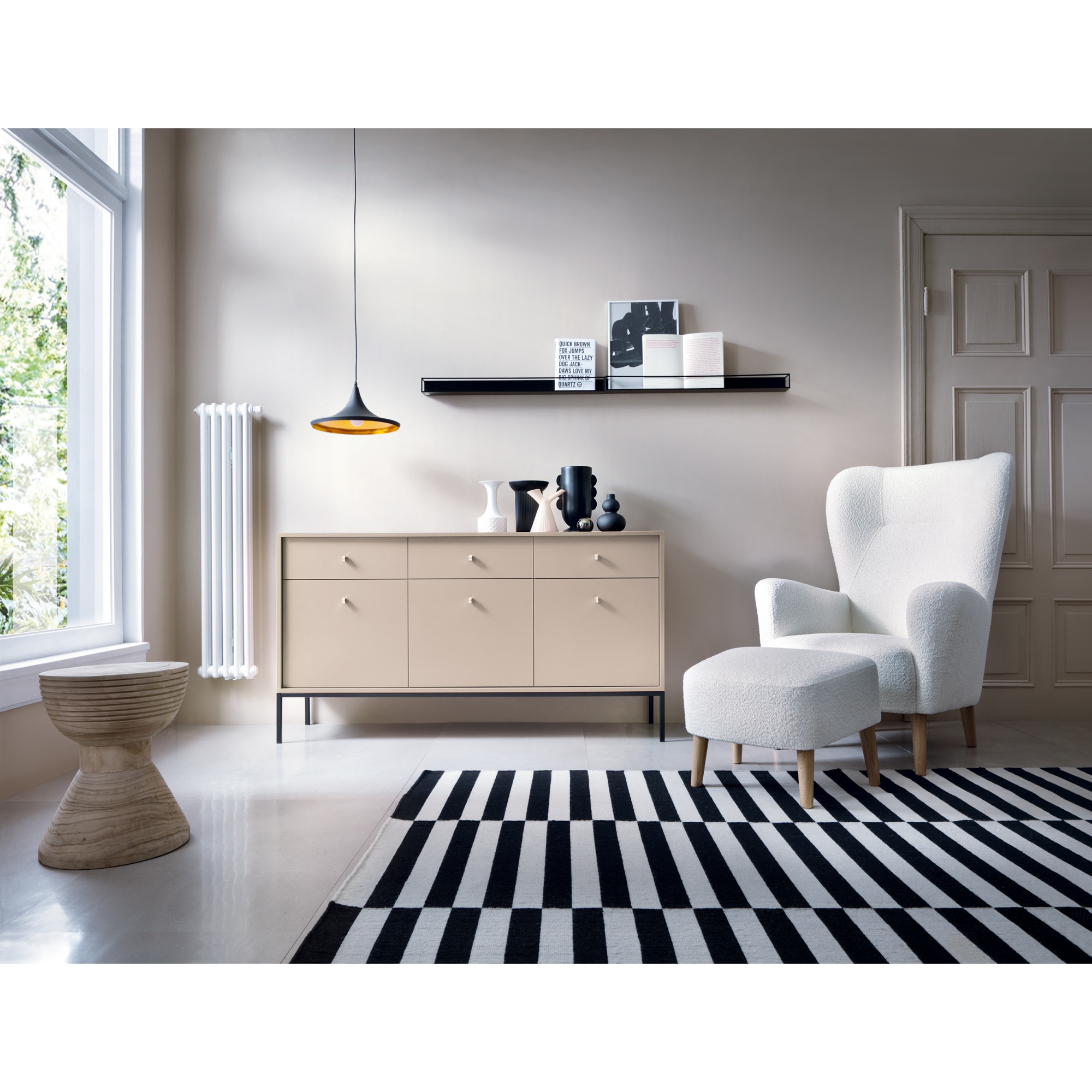 Nowoczesna komoda z trzema pojemnymi szufladami i drzwiami, za którymi oferuje półki. Funkcjonalna komoda, która zaskoczy Cię pojemności i swoimi rozwiązaniami. Idealna do pokoju lub salonu. Kolor komody w połączeniu z ozdobnymi uchwytami tworzy ciekawe połączenie. Całość stoi na wysokich, stabilnych, metalowych nóżkach. Pozwól sobie na wnętrze niczym z okładek najlepszych magazynów. |