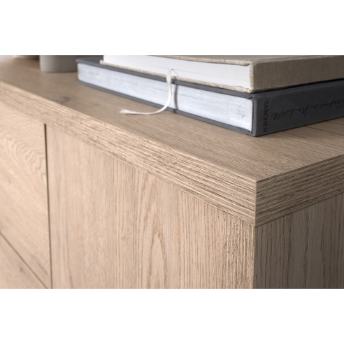 Szafka RTV to mebel który zapewnia funkcjonalność w codziennym użytkowaniu. Dzięki niej uporządkujesz wszystkie elementy sprzętu multimedialnego zachowując estetyczny wygląd. To idealny wybór dla osób które chcą urządzić salon bez kompromisów między wyglądem a praktycznością. Kompaktowa, niewielka bryła z praktycznym wnętrzem wyposażona jest w dwie boczne, zamykane szafki z półkami, szufladę oraz otwartą wnękę. Ten układ pozwoli doskonale zorganizować przestrzeń wokół kącika telewizyjnego. Subtelnie zaokrąglone krawędzie w dolnej części mebla i dyskretne uchwyty wpisują się w naturalną stylistykę kolekcji GIFU. Ciepły odcień dębu cremona, oraz delikatna struktura drewna, nadają wyjątkowego uroku wprowadzając poczucie ładu i harmonii. Kolekcja GIFU tworzy idealne tło dla codziennego życia, łącząc praktyczność, ponadczasową elegancję z nutą nowoczesności. |