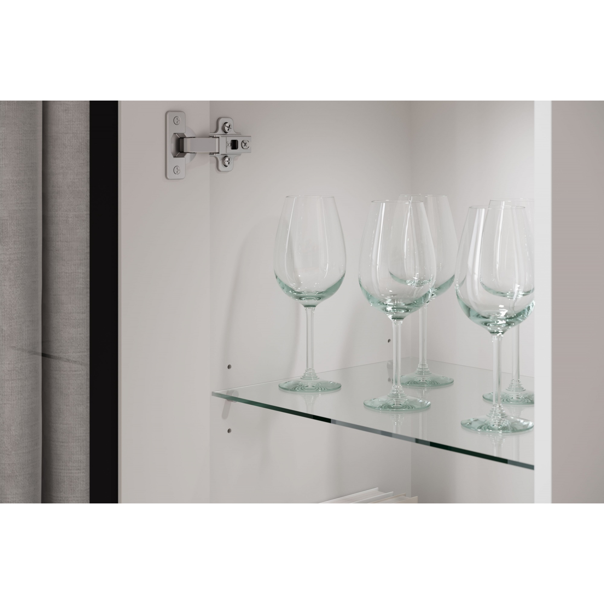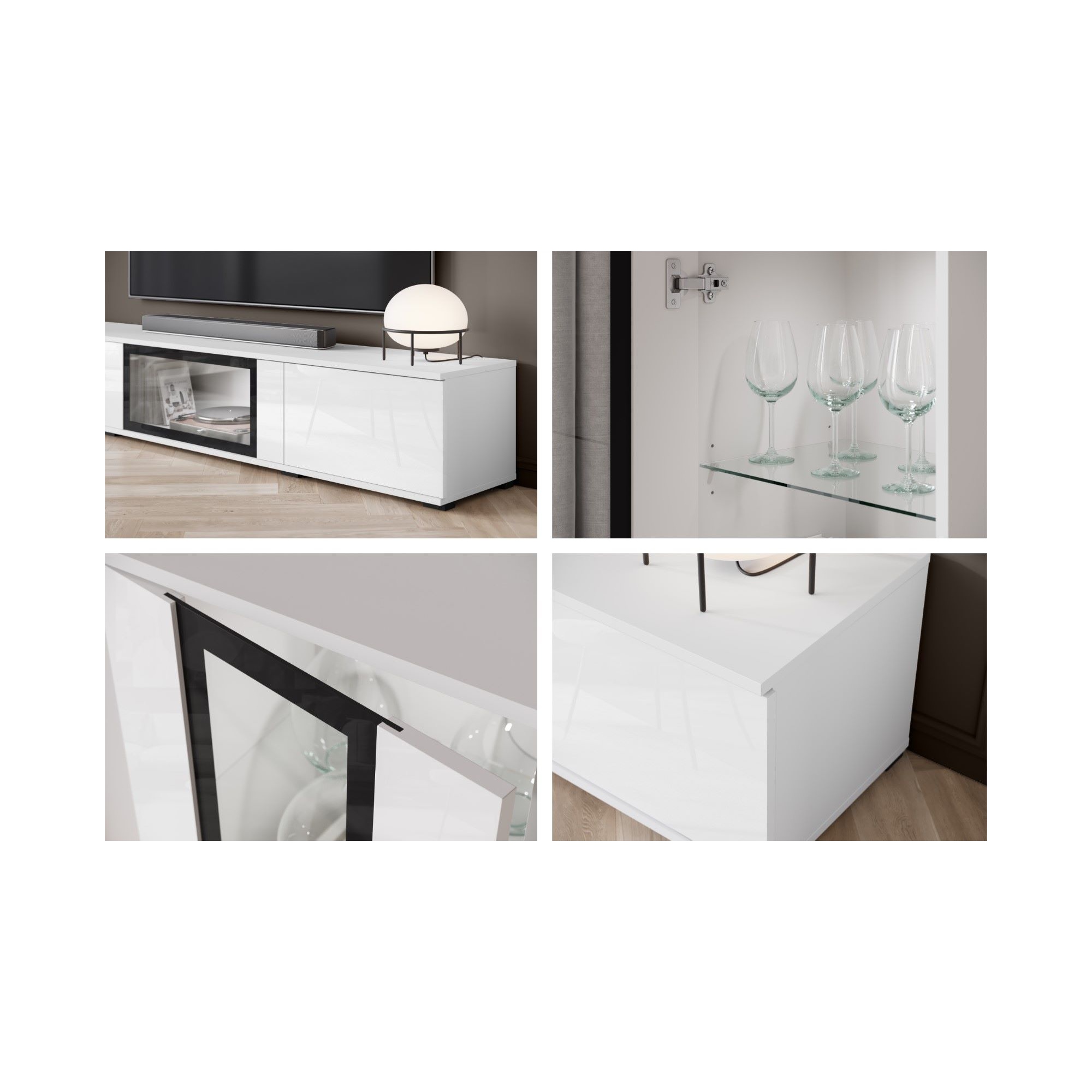 -Drzwi z przeszkleniem w witrynach oraz w środkowej klapie szafki RTV z szkła hartowanego.