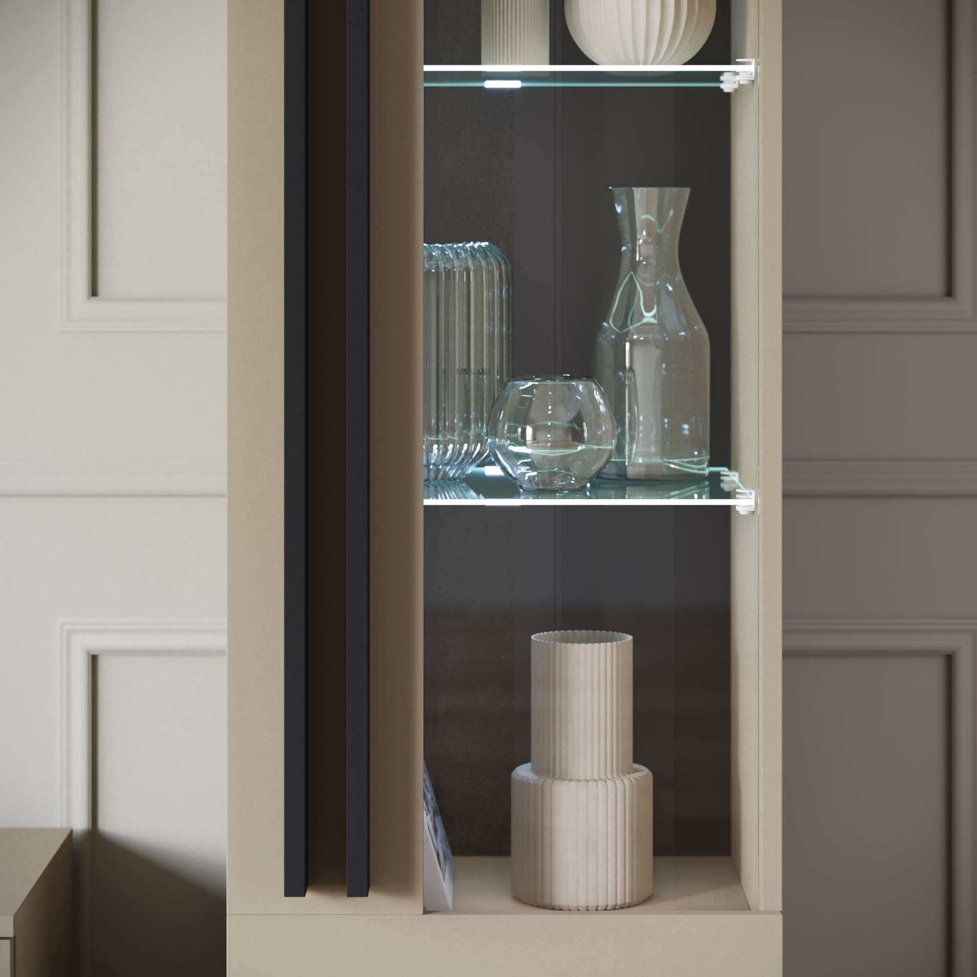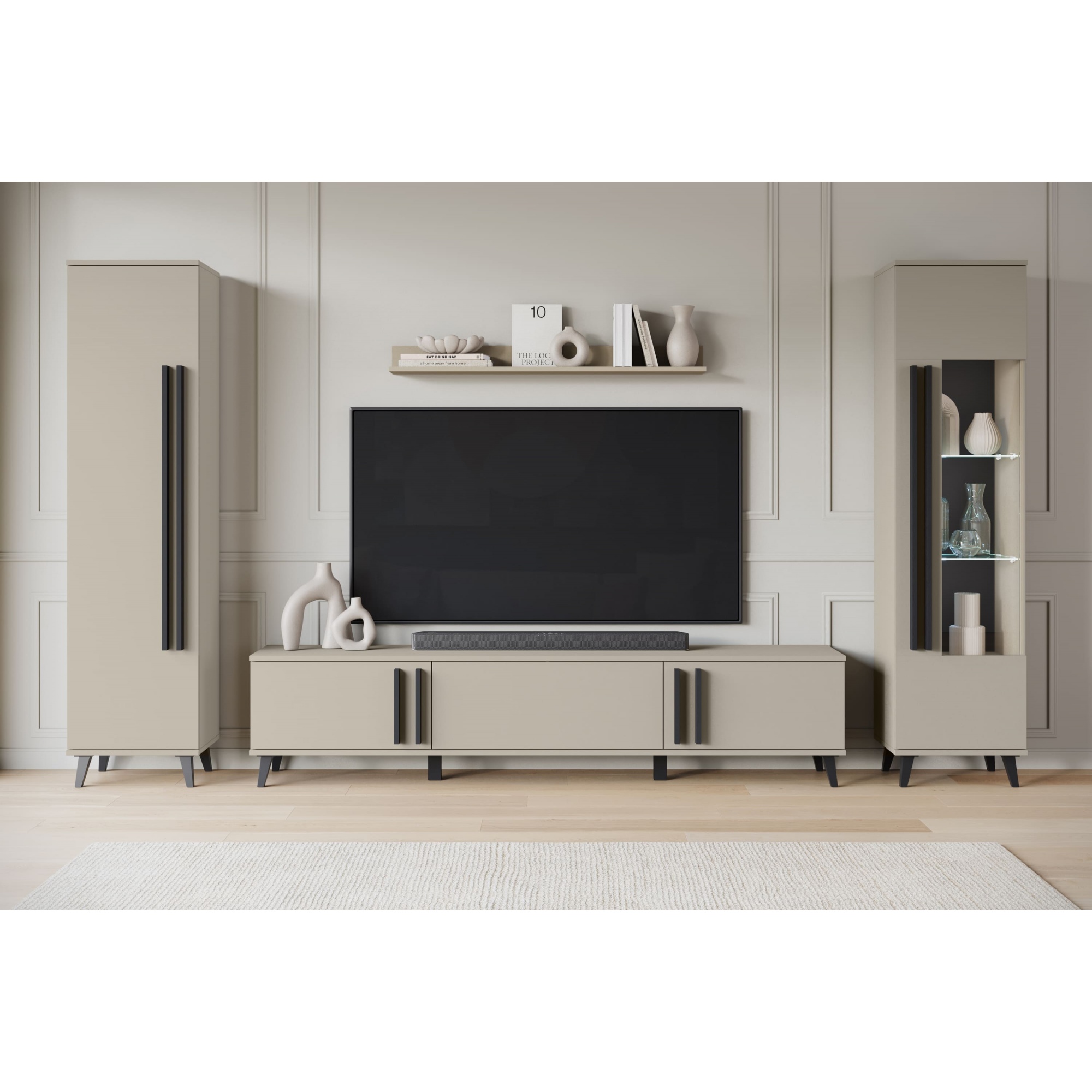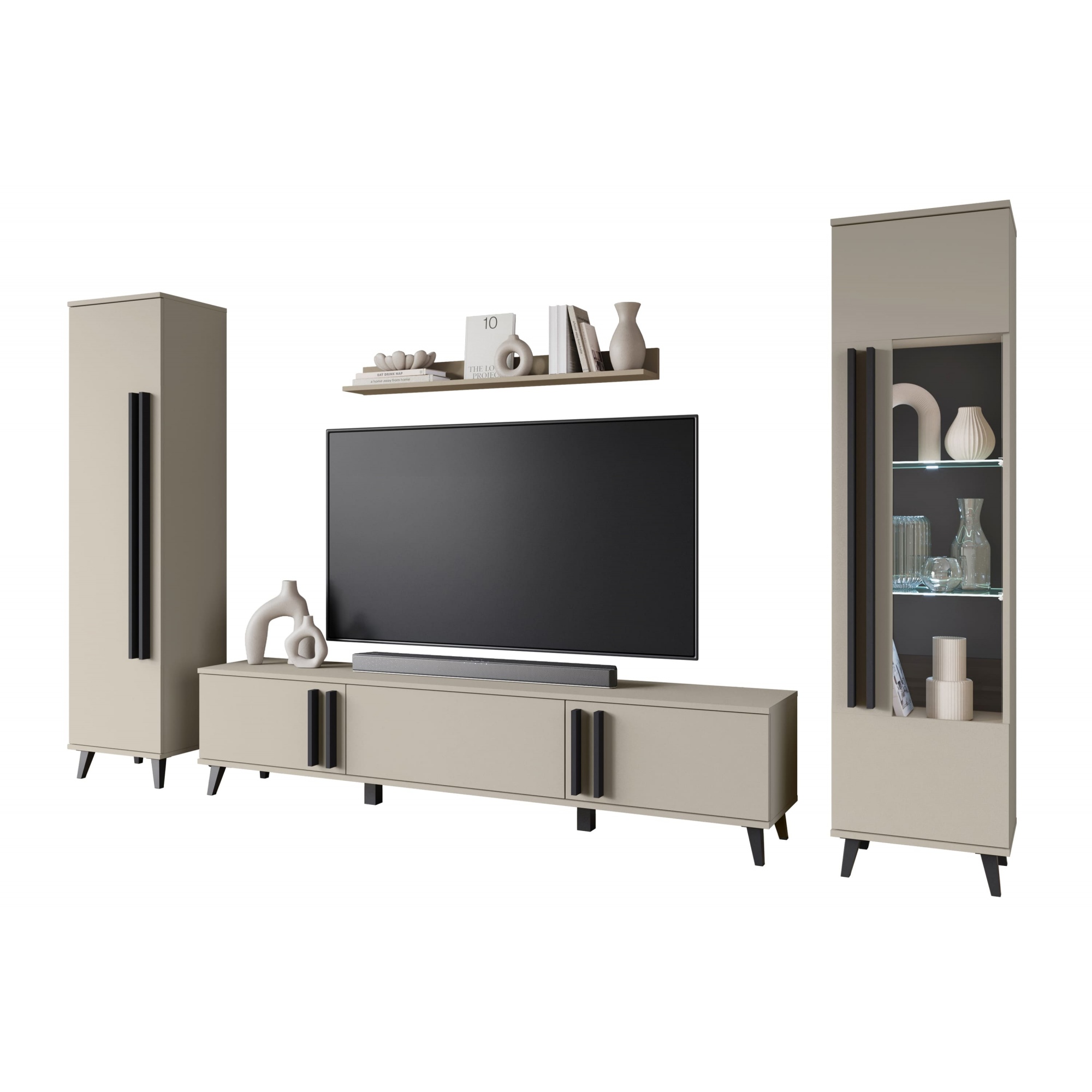 - Wykonana z wysokiej jakości płyty laminowanej o grubości 15 mm - Krawędzie pokryte obrzeżem ABS 0,5 mm - Opcjonalne oświetlenie LED biało o zimnej barwie. - Szklane półki w witrynie - 2 szt. - System Push to open w środkowym schowku szafki RTV - Stabilne nóżki z tworzywa sztucznego - Dostępna w trzech wersjach kolorystycznych |
