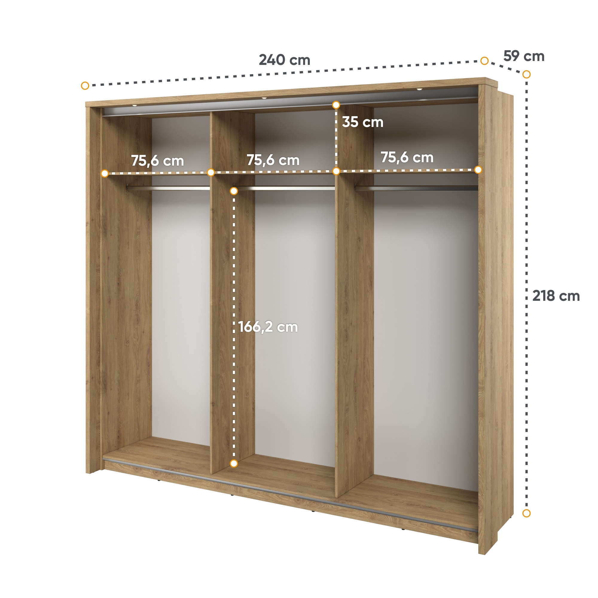 - szerokość 240 cm - wysokość 218 cm - głębokość 59 m |