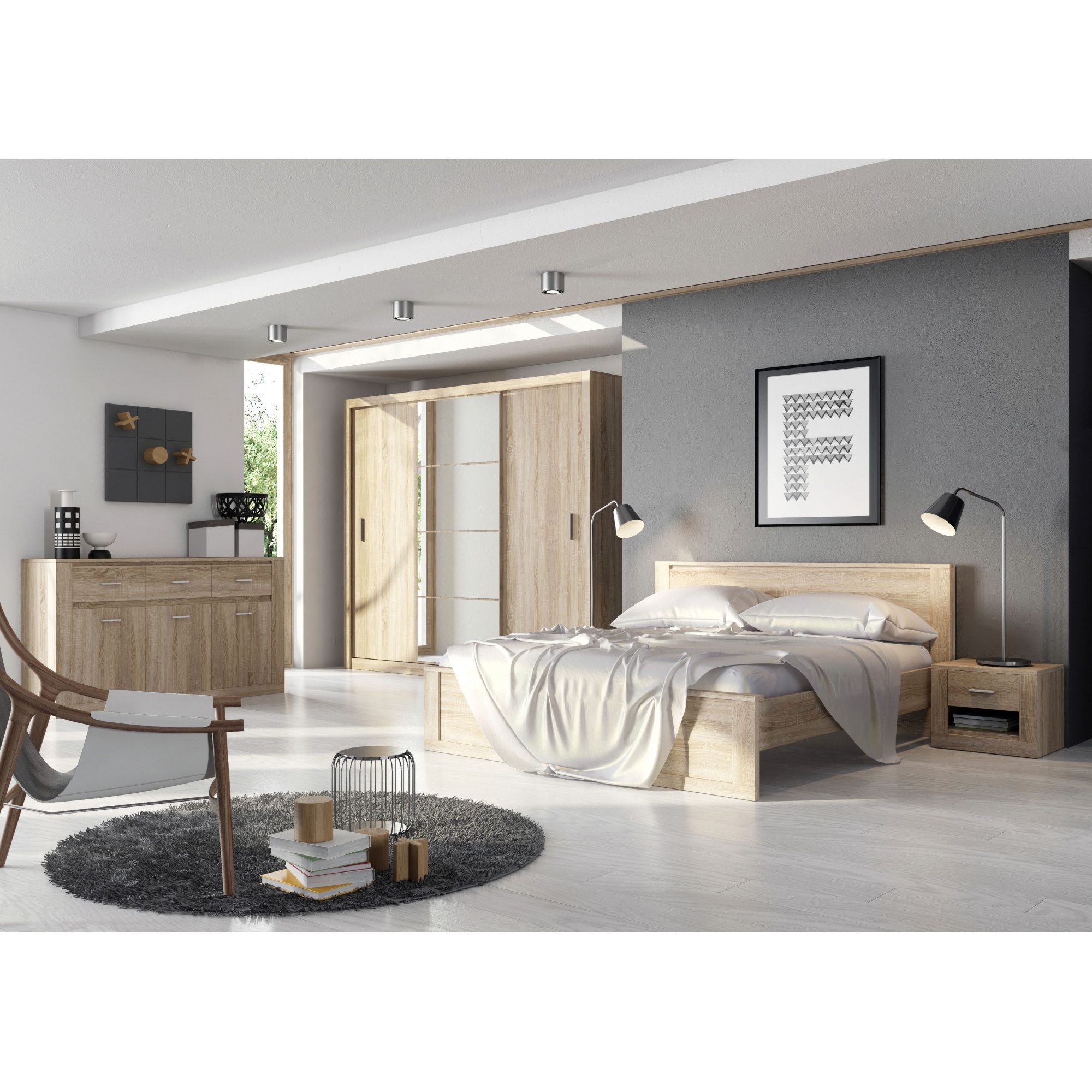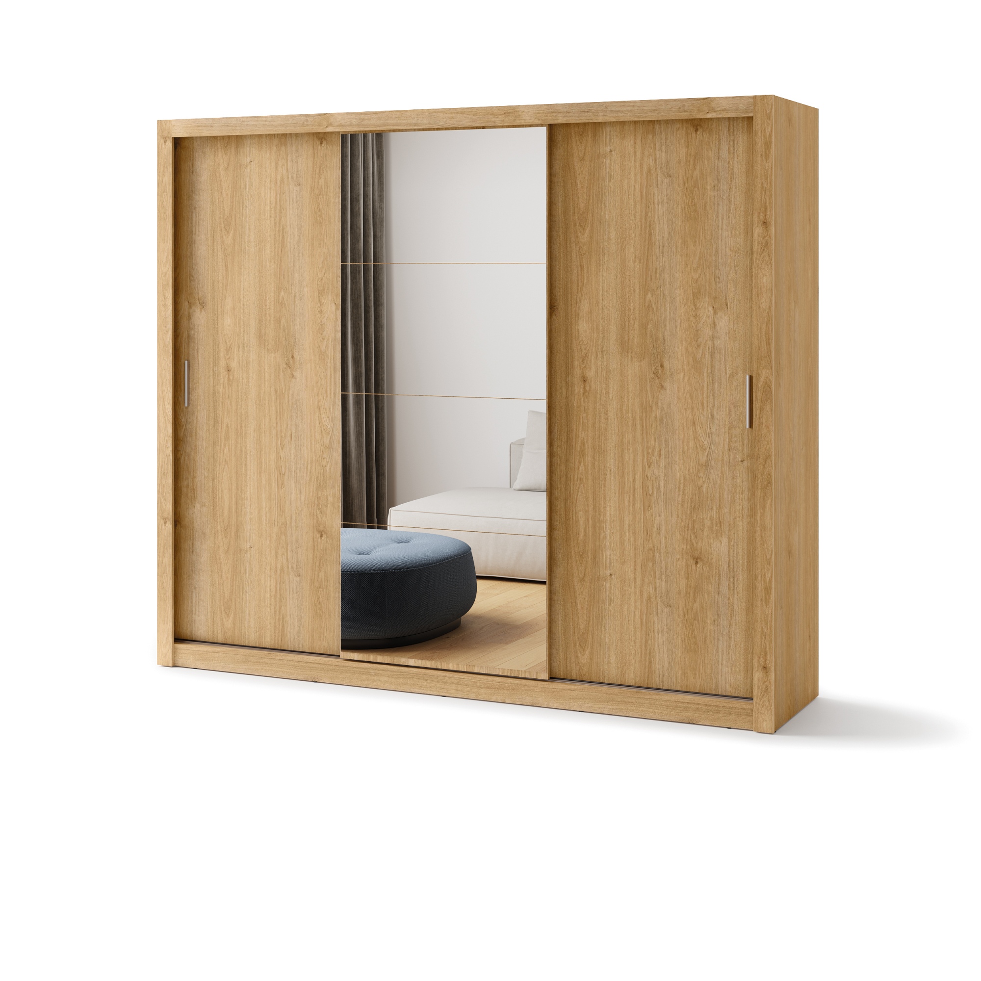 Szafa to niezbędny element wyposażenia w każdym domu, zaprojektowany z myślą o praktycznym przechowywaniu ubrań i akcesoriów. Pojemna szafa z kolekcji JADIA z pewnością spełni oczekiwania osób, poszukujących funkcjonalnego mebla o atrakcyjnym designie. Przemyślana konstrukcja i przestrzeń z powodzeniem pomieści wszystko, co niezbędne, pozwalając zachować porządek. Minimalistyczny wygląd, oraz uniwersalne wybarwienia szaf JADIA sprawią, że znakomicie dopełnią one każde wnętrze urządzone zarówno w nowoczesnym, jak i klasycznym stylu. Pojemna, obszerna szafa z trojgiem drzwi przesuwnych i lustrami optycznie powiększającymi wnętrze. Wyposażona w dwa drążki na wieszaki oraz obszerne półki. Mebel wykonano z wytrzymałej płyty laminowanej wykończonej trwałym obrzeżem ABS. Funkcjonalność, połączona z estetyką i solidnym wykonaniem, sprawia, że jest to nie tylko praktyczny, ale również atrakcyjny mebel, który tworzy przyjemne i uporządkowane wnętrza . Kolekcja JADIA oferuje szafy w różnych wzorach, kolorach, oraz rozmaitym wyposażeniu. Znajdź wśród nich szafę dopasowaną do Twoich potrzeb. Meble z kolekcji JADIA w dostępne w osobnych ofertach.