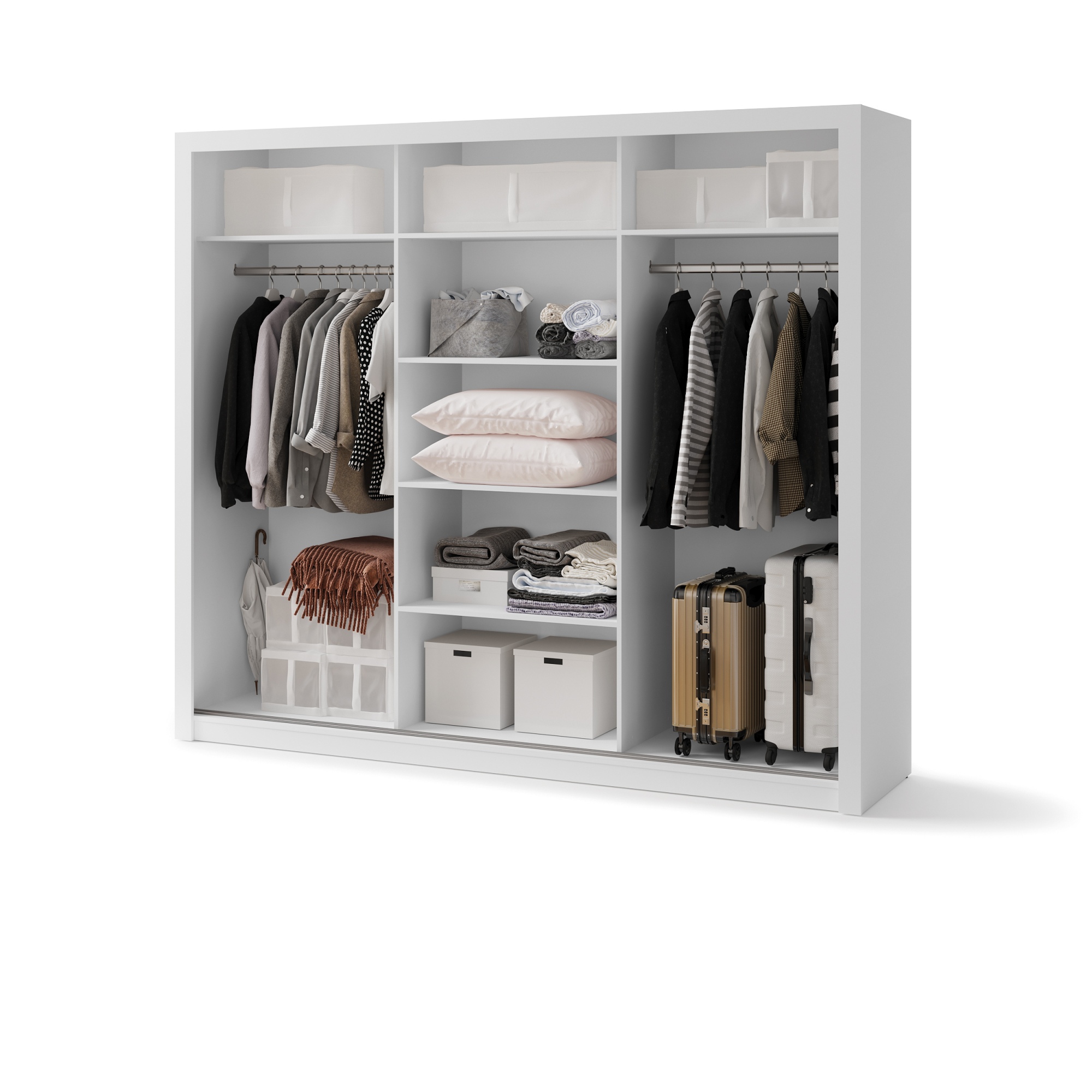 - waga bryły 206.0 kg - uchwyt z tworzywa - prowadnica frontu szafy aluminiowa; montaż dolny i górny - wyposażenie 6x półka, 2x drążek - Korpus, blat, półka i front wykonane z płyta wiórowa laminowana; 16mm - wykończenie krawędzi korpusu, półki i frontu ABS;0,45mm - ściana tylna z płyta HDF; 3mm - dopuszczalne obciążenie półki 5.0 kg - ilość półek 6 |