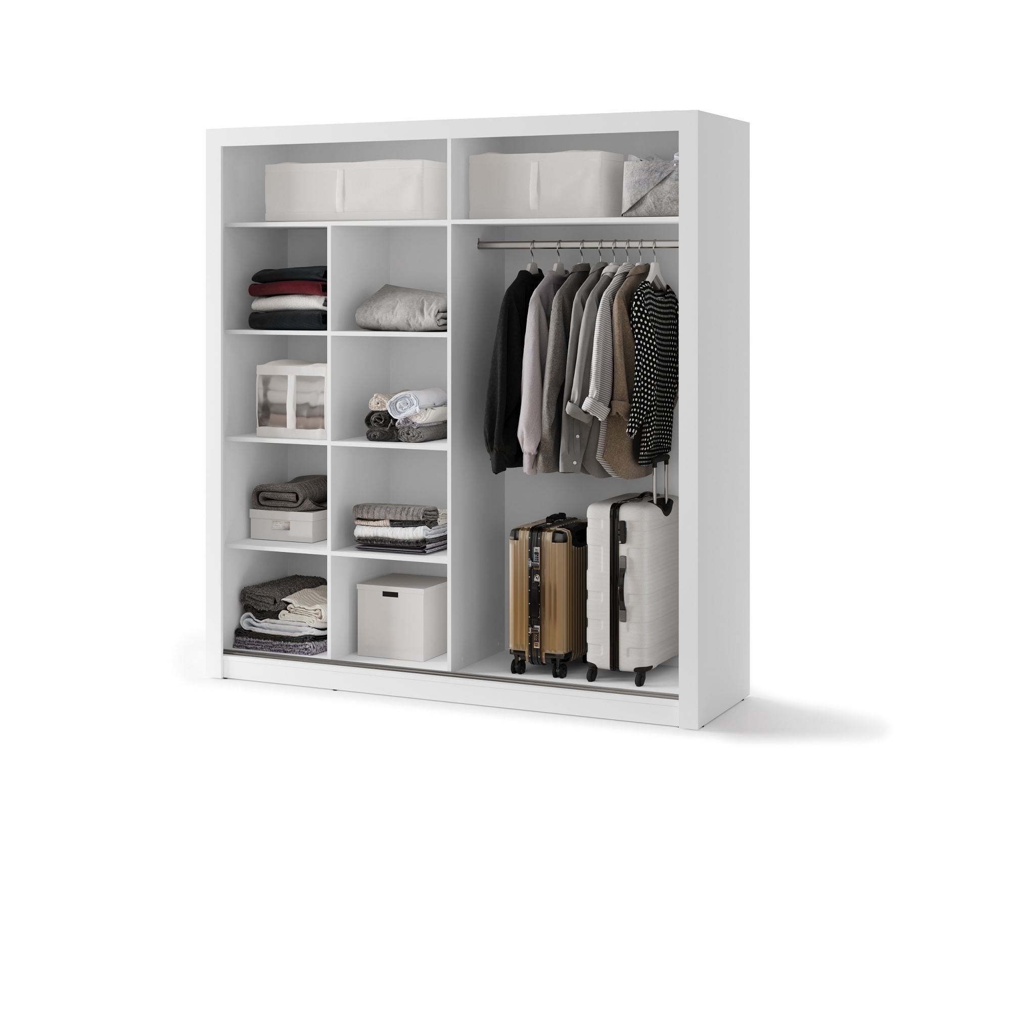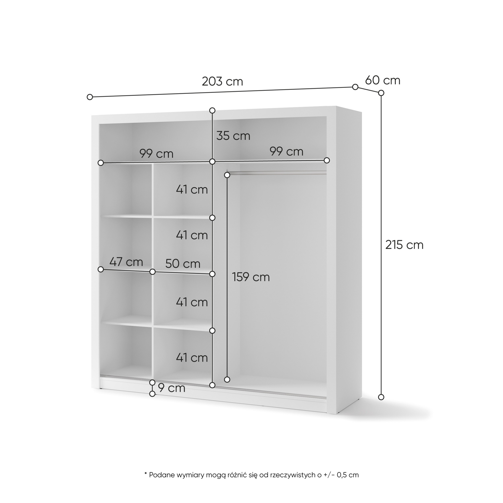 Szafa to niezbędny element wyposażenia w każdym domu, zaprojektowany z myślą o praktycznym przechowywaniu ubrań i akcesoriów. Pojemna szafa z kolekcji JADIA z pewnością spełni oczekiwania osób, poszukujących funkcjonalnego mebla o atrakcyjnym designie. Przemyślana konstrukcja i przestrzeń z powodzeniem pomieści wszystko, co niezbędne, pozwalając zachować porządek. Minimalistyczny wygląd, oraz uniwersalne wybarwienia szaf JADIA sprawią, że znakomicie dopełnią one każde wnętrze urządzone zarówno w nowoczesnym, jak i klasycznym stylu. Duża i pojemna szafa JADIA z trojgiem drzwi przesuwnych. Na froncie jednych drzwi znajduje się lustro - niezbędny element każdej garderoby, który jednocześnie optycznie powiększa wnętrza i wprowadza do pomieszczenia więcej światła. Wnętrze szafy kryje przyjazny i funkcjonalny układ - znajdziesz tam drążek na wieszaki oraz dwa wewnętrzne regały z półkami. Dostępne są również dwie wewnętrzne szuflady - idealne do przechowywania bielizny. Szafa dostępna jest w kolorze białym. Mebel wykonano z wytrzymałej płyty laminowanej, wykończonej trwałym obrzeżem ABS. Funkcjonalność, połączona z estetyką i solidnym wykonaniem, sprawia, że jest to nie tylko praktyczny, ale również atrakcyjny mebel, który tworzy przyjemne i uporządkowane wnętrza. Kolekcja JADIA oferuje szafy w różnych wzorach, kolorach, oraz rozmaitym wyposażeniu. Znajdź wśród nich szafę dopasowaną do Twoich potrzeb. Meble z kolekcji JADIA w dostępne w osobnych ofertach.