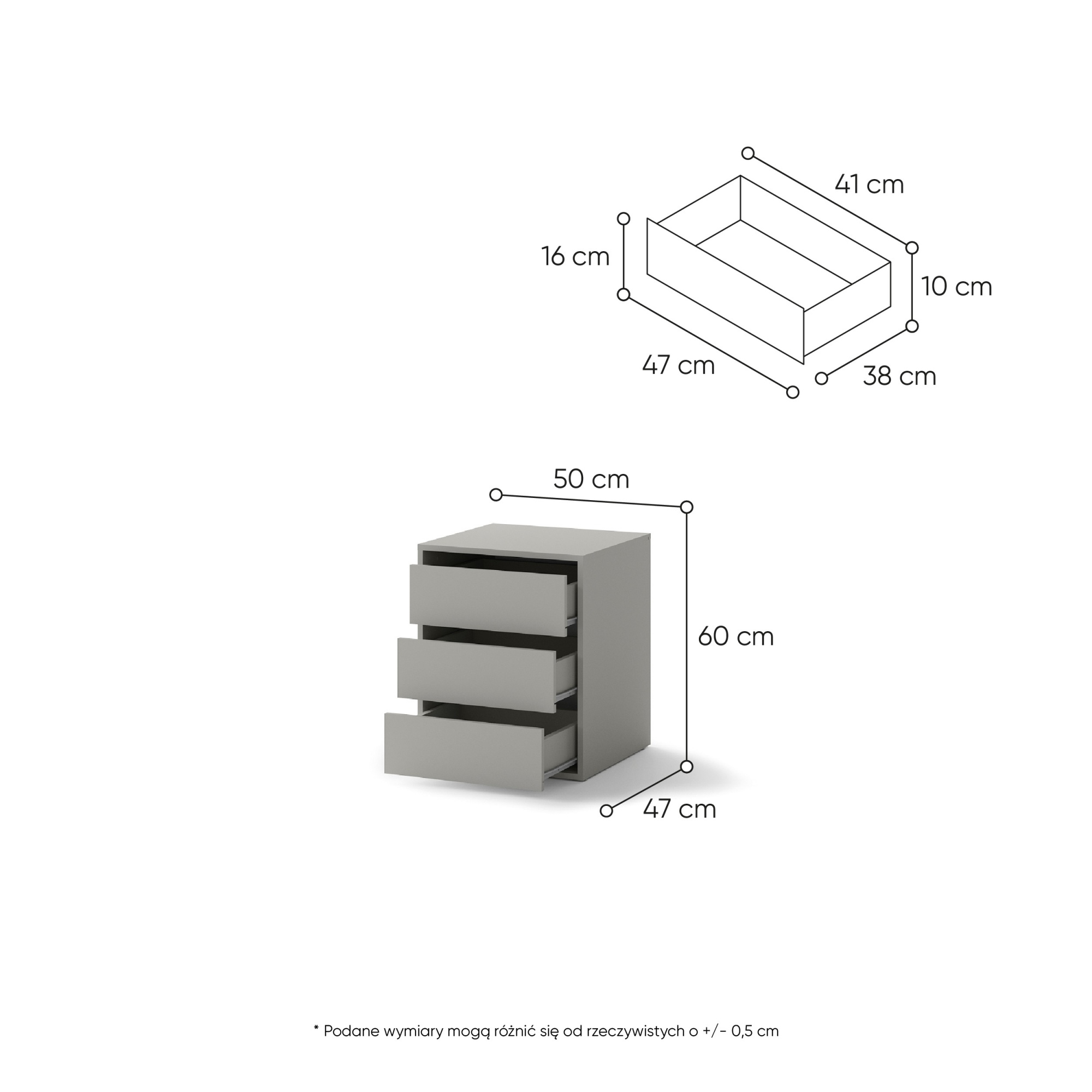 - szerokość 50 cm