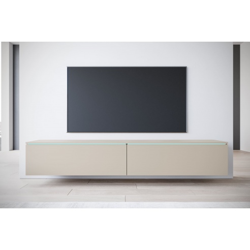 Szafka TV zapewnia wygodne przechowywanie w dwóch schowkach ukrytych za drzwiami otwieranymi z góry do dołu w systemie klap. Pozwoli to na uporządkowanie sprzętu rtv, jak również zdjęć, czy pudełek dla których zawsze brakuje miejsca.