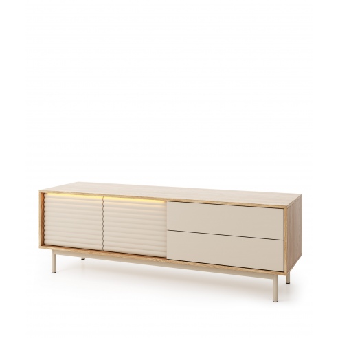Szafka RTV to mebel który zapewnia funkcjonalność w codziennym użytkowaniu. To idealny wybór dla osób które chcą urządzić salon bez kompromisów między wyglądem a praktycznością. Szafka LITA 4 łączy minimalistyczny design z doskonałą grą faktur na frontach drzwi. Ryflowane drzwiczki kryją dwa niezależne od siebie schowki, a szuflady z gładkimi frontami pomieszczą drobniejsze rzeczy. Kolekcja LITA to połączenie nowoczesnego minimalizmu z subtelną elegancją. Zestawienie kolorów kaszmir i dąb olejowany, ryflowane fronty oraz metalowe, wysokie nóżki tworzą wyjątkową, wyważoną całość z dopracowanymi szczegółami. Wbudowane oświetlenie LED uwydatnia frezowany wzór 3D na frontach z MDF-u i podkreśla charakter mebli. Zastosowane w meblach otwieranie w systemie Push to open zapewnia komfort użytkowania. |