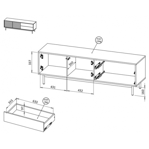 ![]() Wymiary: Szer. 160,1 cm x Wys. 52,9 cm x Gł. 40 cm Wysokość nóżki - 16 cm |