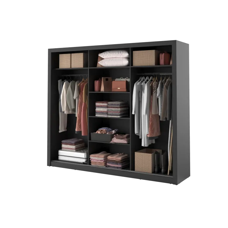 Szafa Erta 2 to propozycja dla tych, którzy cenią sobie elegancki design i funkcjonalność. Ta pojemna szafa, będąca częścią kultowej kolekcji ERTA, to mebel idealny dla tych, którzy pragną utrzymać porządek w swoich ubraniach i akcesoriach. Zapewnia ona doskonałe warunki do przechowywania różnego rodzaju elementów garderoby i dodatków, niezależnie od ich wielkości i kształtu.