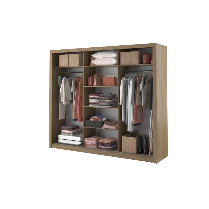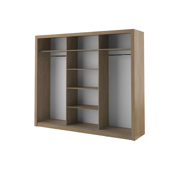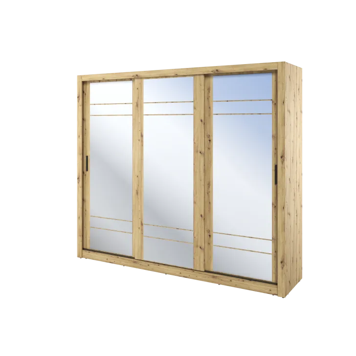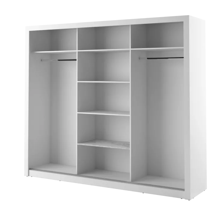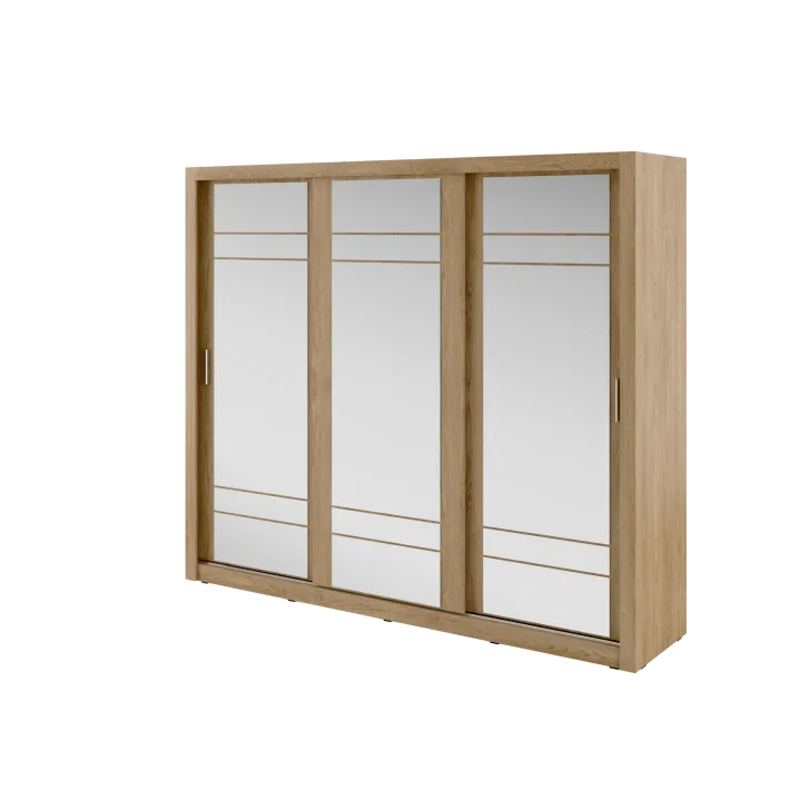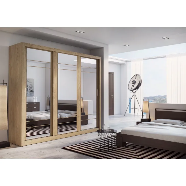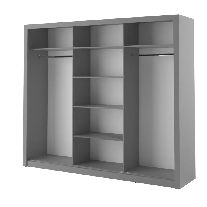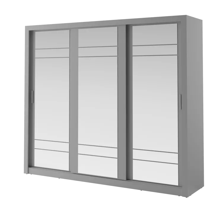 Szafa Erta 2 charakteryzuje się minimalistycznym wyglądem, który harmonijnie wpisuje się zarówno w nowoczesne, jak i klasycznie urządzone wnętrza. Dodatkowo dostępność różnych kolorów, zapewnia możliwość dopasowania do każdej aranżacji. Szafa posiada trzy przesuwne drzwi z lustrami, dzięki czemu optycznie powiększa przestrzeń i umożliwia wygodne przejrzenie się. Praktyczność tego mebla podkreśla system drzwi przesuwnych, zapewniający łatwy dostęp do przechowywanych w nim rzeczy.