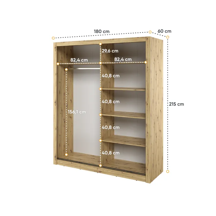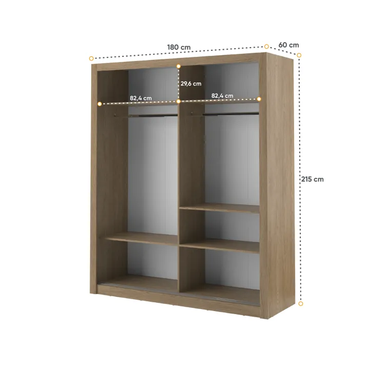 - Wymiary: 180 x 215 x 60 cm (szerokość x wysokość x głębokość)
