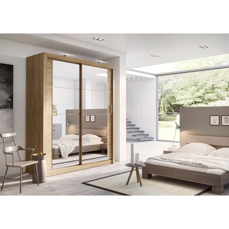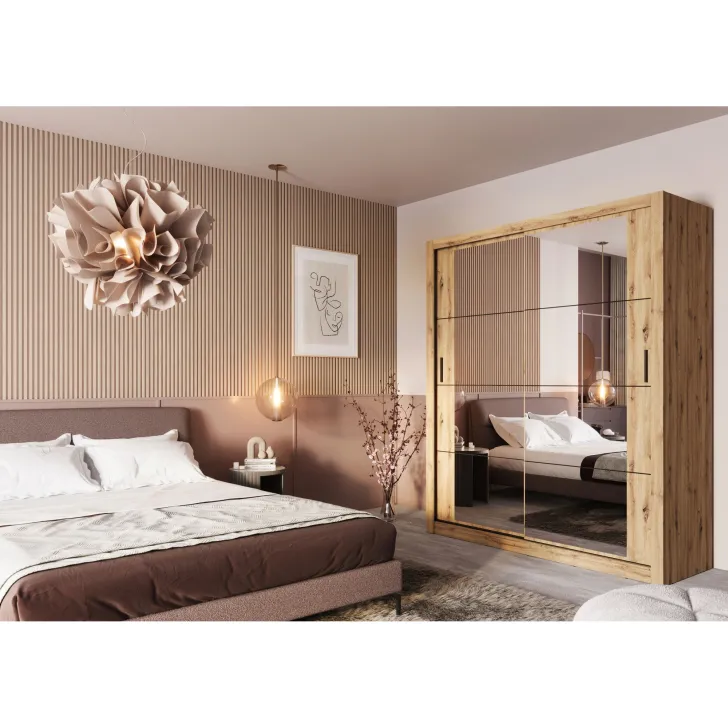 Zadbaliśmy o to, by zestawienie funkcjonalności z estetycznym wykonaniem sprzyjało tworzeniu przyjaznych i uporządkowanych wnętrz. Dlatego w szafie ERTA 3 znajduje się też lustro na drzwiach, które nie tylko dodaje wnętrzu światła, ale również ułatwia codzienne stylizacje i pozwala zaoszczędzić cenny czas przed wyjściem z domu.