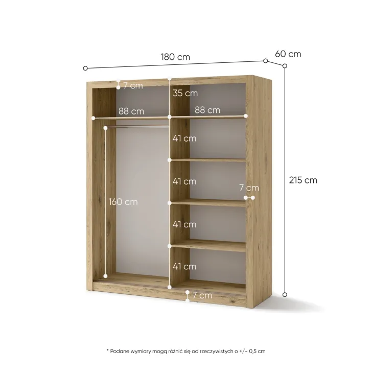 - Versatylność: Szafa JADIA 3 dostępna jest w wielu różnych wzorach i kolorach, dzięki czemu z łatwością dopasujesz model idealnie odpowiadający Twoim potrzebom i oczekiwaniom.