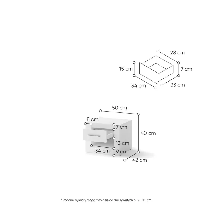 Wymiary Szafka nocna JADIA 7: