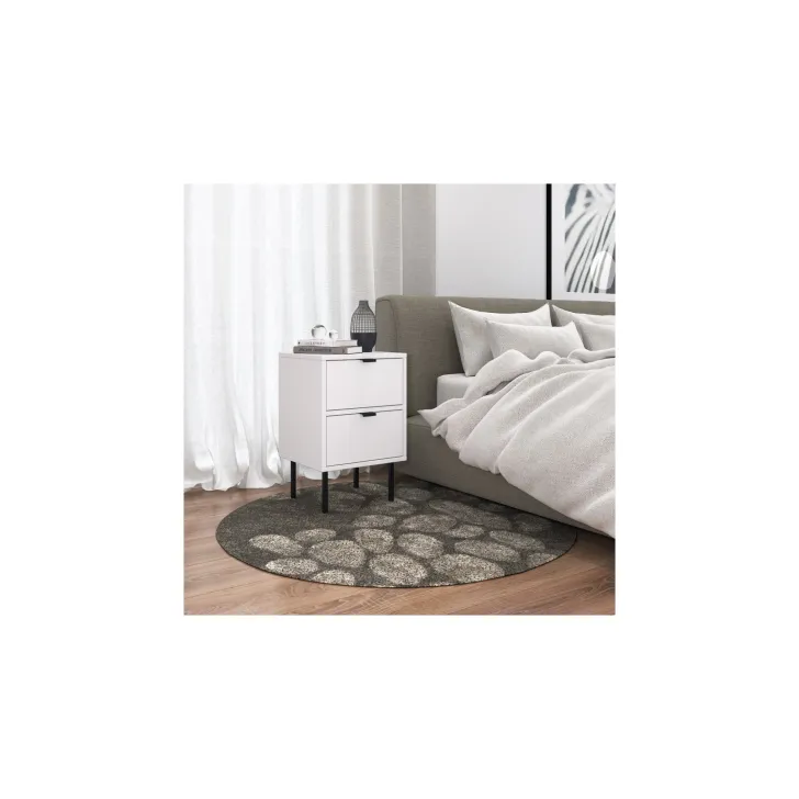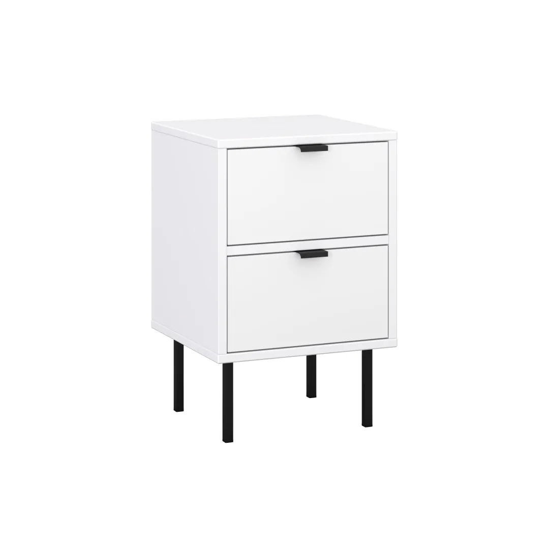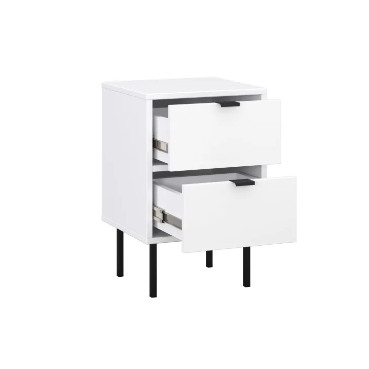 Szafka nocna "KOIDO", dwie szuflady, czarne elementy, biały kolor
