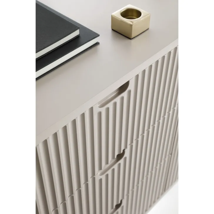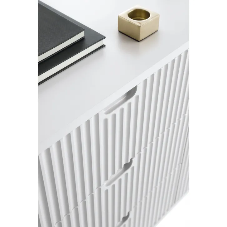 Szafka RTV ZOYA to połączenie klasycznej elegancji z modernistycznym designem. Jej kolor, w połączeniu z unikalnym, ozdobnym frontem wykonanym z MDF, stwarza harmonijne i minimalistyczne połączenie, które odświeży każde wnętrze, nadając mu nowego, stylowego wyglądu.