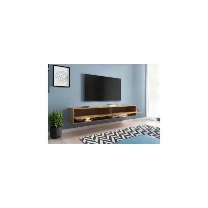 Dostępna jest w szerokim wachlarzu wymiarów: 100, 140, 180 i 300 cm, co pozwala na dopasowanie jej do każdego rozmiaru pokoju. Szafka RTV "ANNE" została zaprojektowana z myślą o łatwości montażu, niezależnie od tego, czy jest wieszana na ścianie, czy stoi na nóżkach.