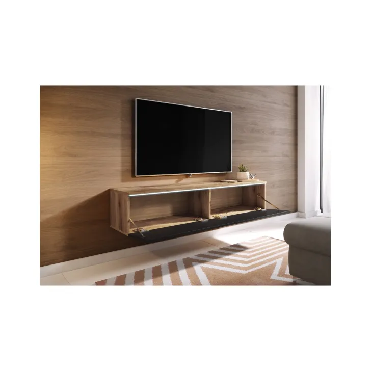 Dzięki możliwości montażu na ścianie, Szafka RTV "DIDI" stanowi doskonałe rozwiązanie dla osób ceniących przestrzeń i porządek. Szafka może być również stawiana na podłodze, co idealnie sprawdzi się w przypadku dużych pomieszczeń. Obie opcje montażu pozwalają na łatwe utrzymanie czystości oraz stwarzają dodatkową przestrzeń do przechowywania.