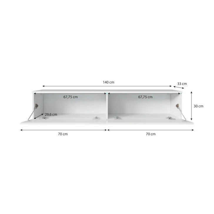 Wymiary Szafki RTV 140 cm dąb Wotan / biały połysk
